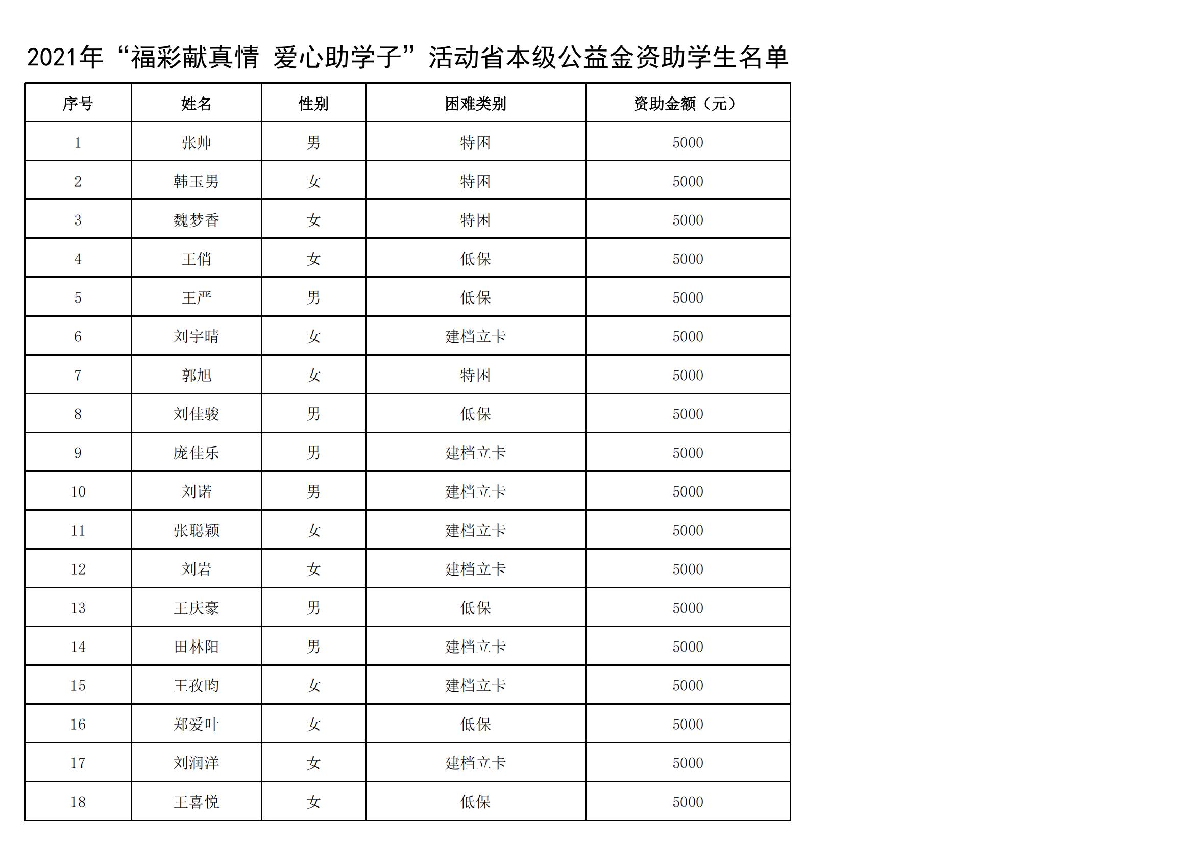 2021年“福彩献真情爱心助学子”活动省本级公益金资助学生名单公示