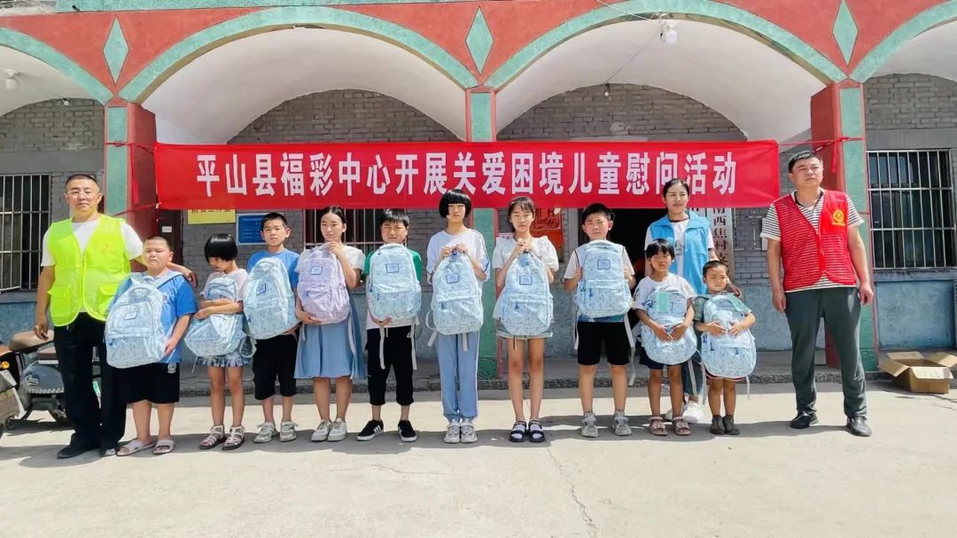 7月6日,平山县福彩中心前往平山镇南西焦村、下槐镇中心小学开展关爱留守困境儿童公益活动,为15名农村留守困境儿童送上文具、画笔、魔方等慰问品。