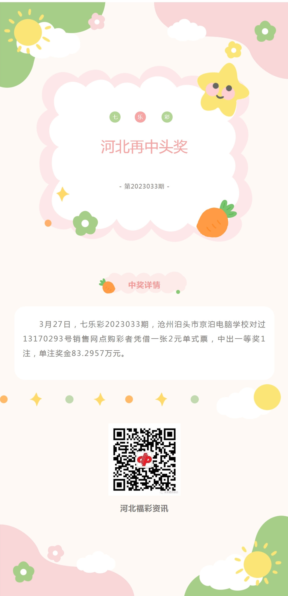 七乐彩持续发力!河北再中头奖1注