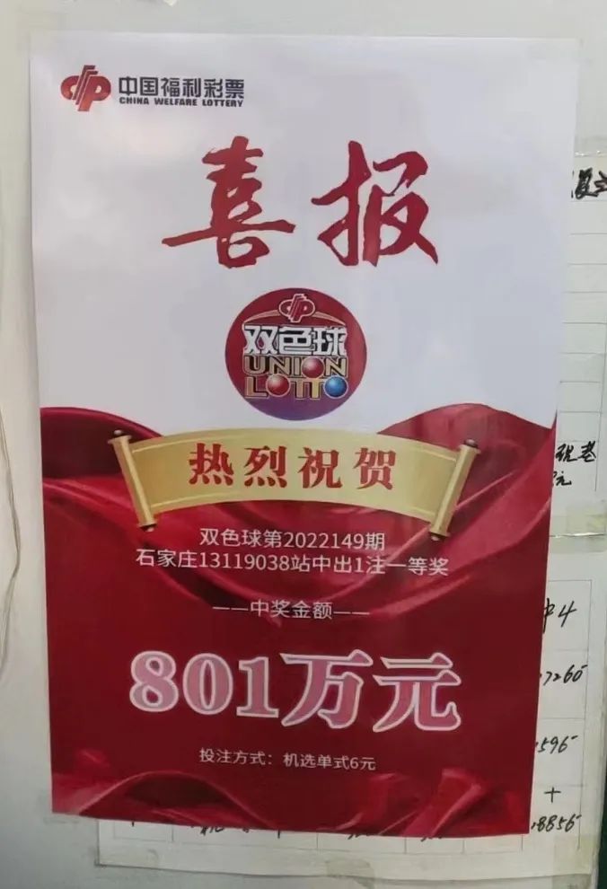 12月27日,双色球第2022149期,我省同时中出2注一等奖,单注奖金801.4411万元。其中石家庄市鹿泉区华银怡苑小区底商13119038号销售网点一位购彩者靠赠票收获了一等奖!