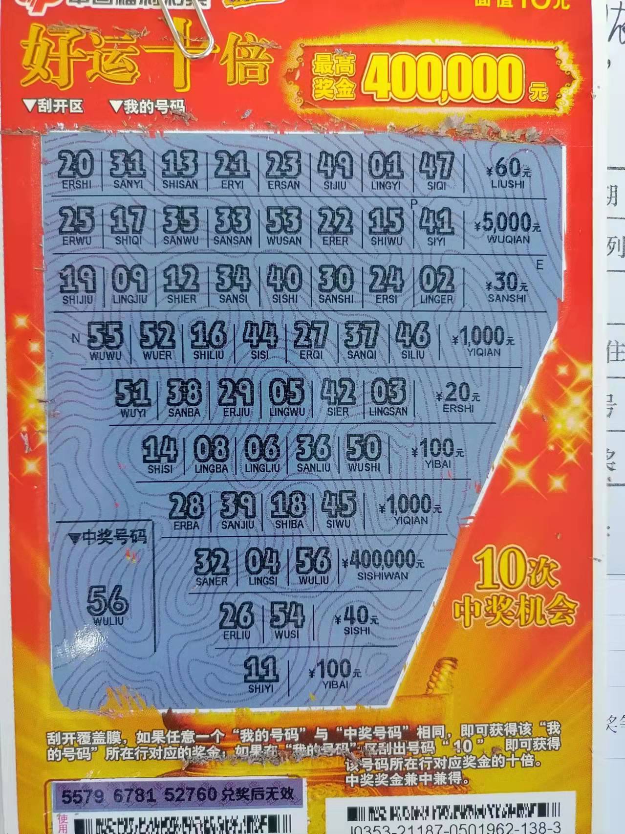 元旦将至,刮刮乐为唐山购彩者送来新年贺礼。12月23日下午4点,杨先生和朋友来到唐山市福彩业务办理大厅,领取了“好运十倍”40万元大奖。
