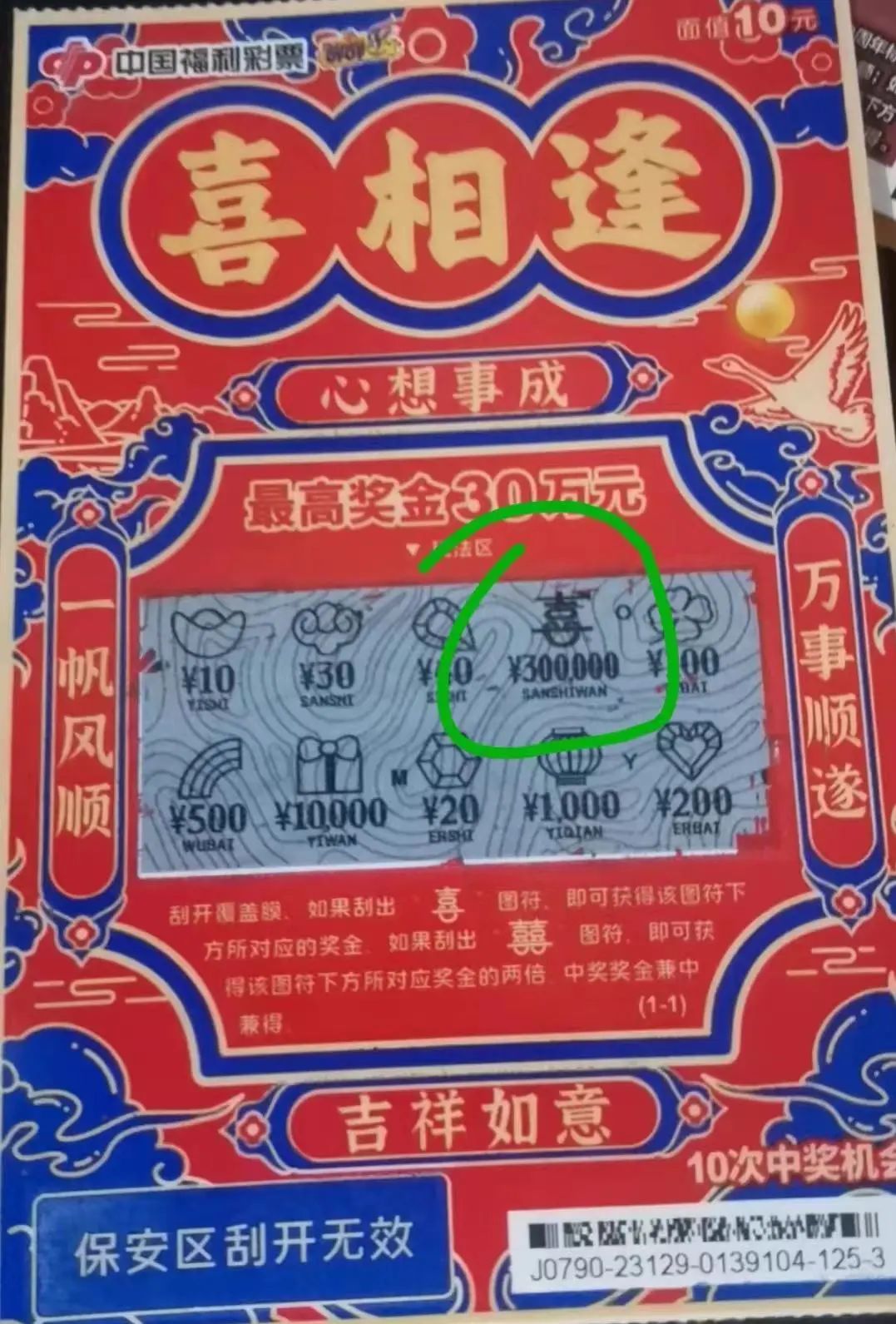 近日,衡水市武强街关镇邮局北邻13185116号销售网点一位购彩者购买10元面值的“喜相逢”刮出最高奖金30万元。