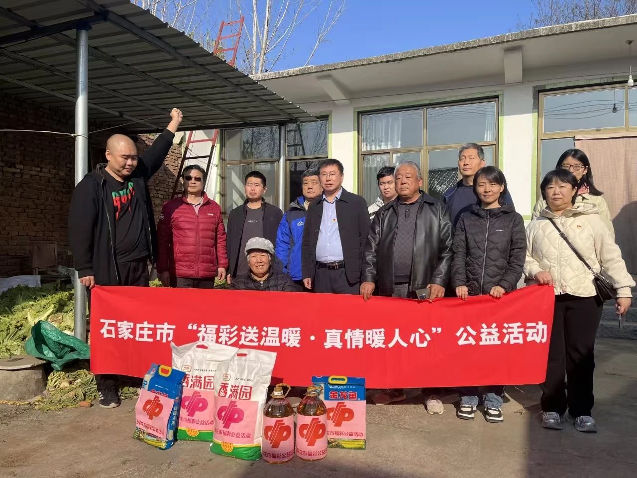 近日,石家庄市福彩中心党员志愿者前往灵寿县狗台乡贯庄村开展“福彩送温暖·真情暖人心”活动,并为困难群众送去米、面、油等慰问品。