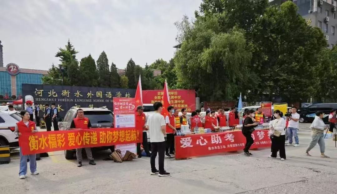 6月7日,高考首日,衡水市福彩中心再次行动起来,举办了爱心助考活动。活动现场搭建了遮阳棚、布置了休息区,并为考生准备了饮用水和医药箱,为考生们提供了一个温馨、舒适的考试环境。