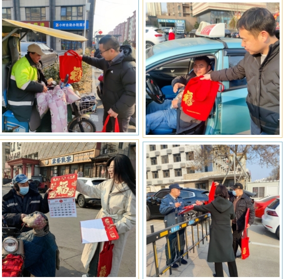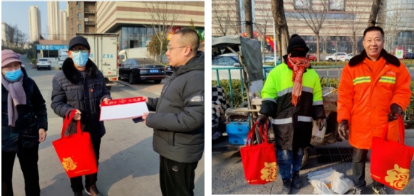活动过程中,党员志愿者们穿梭于街头巷尾,将饱含美好寓意的春联和福字送到坚守一线的劳动者以及周边社区老人手中,并向他们送上了新春的问候与美好祝愿。