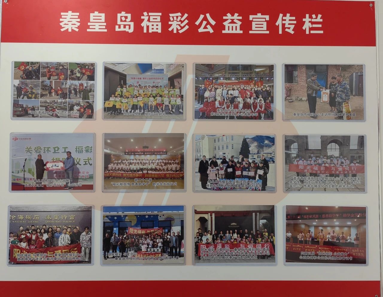 福彩公益宣传栏,展示近年来秦皇岛福彩组织的一系列公益活动,及中福彩中心和省福彩中心开展的大型公益活动,引导购彩群体了解福利彩票的公益性质和社会责任,凸显福利彩票支持社会福利事业、关注困难群体的实践,彰显福利彩票坚守“取之于民、用之于民”的社会承诺。