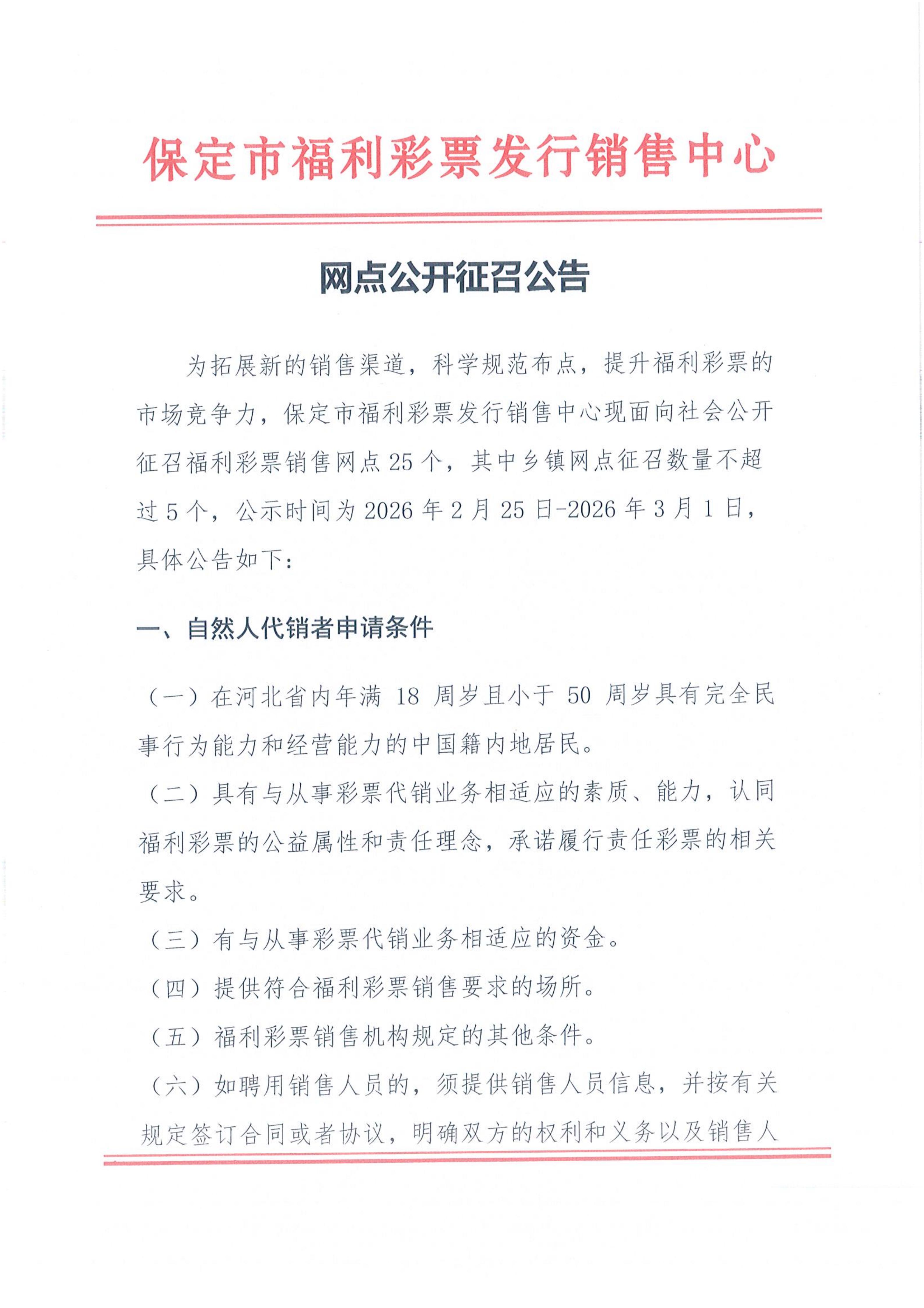 【公告】关于公开征召新建即开票销售网点结果公示(定州)
