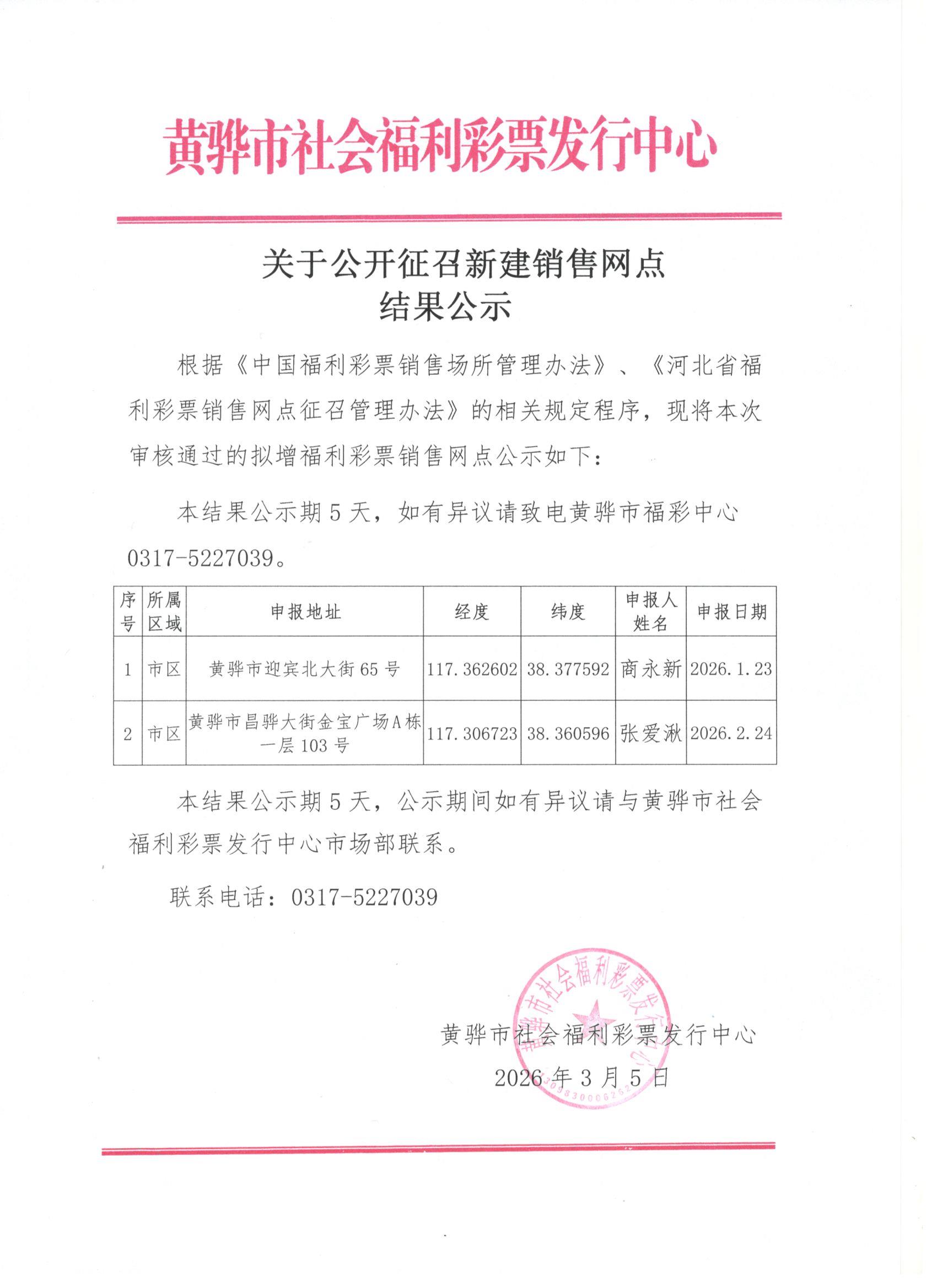 【公告】关于公开征召新建即开票销售网点结果公示(衡水)