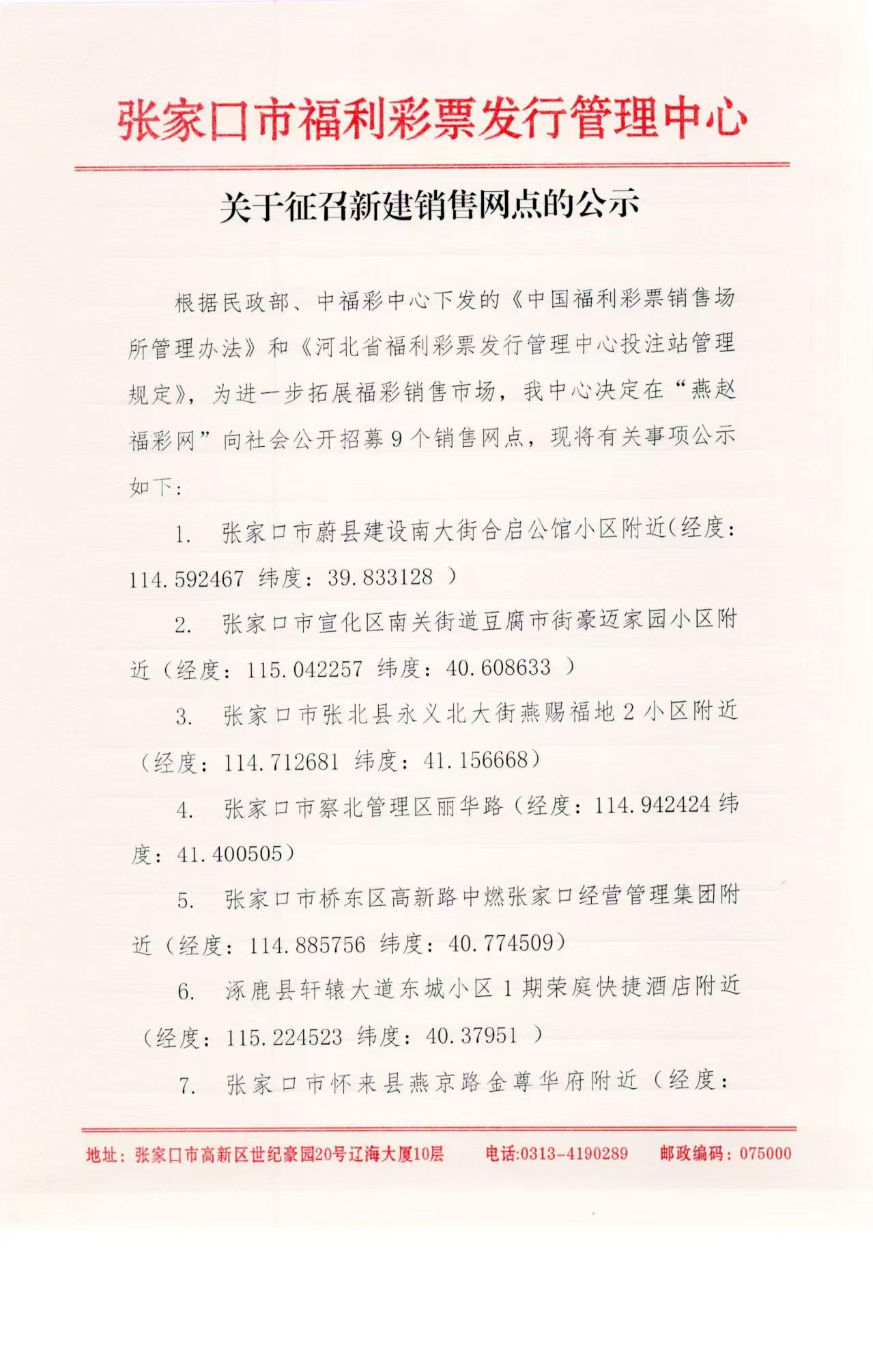 / 【公告】关于征召新建销售网点的公示(张家口)