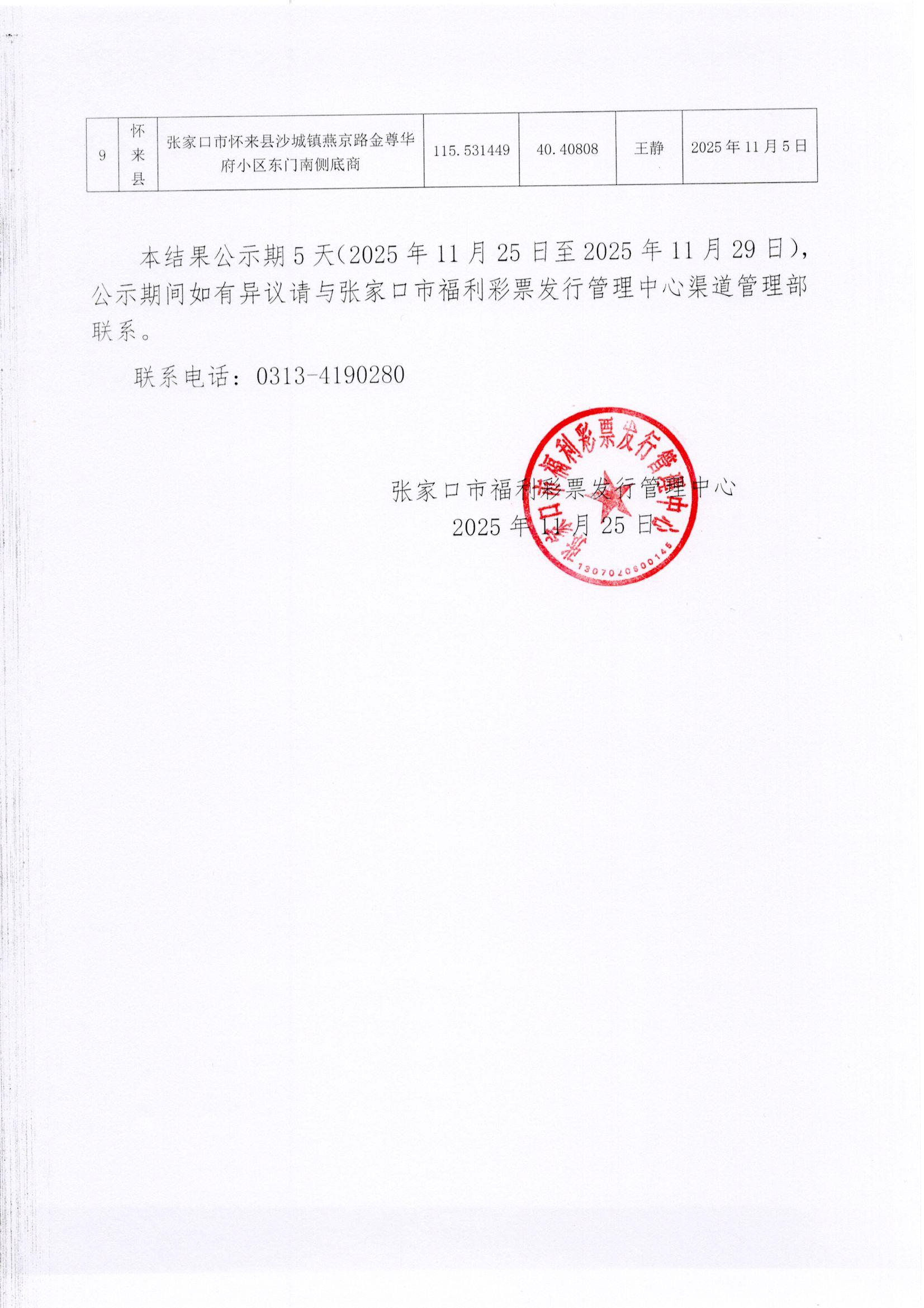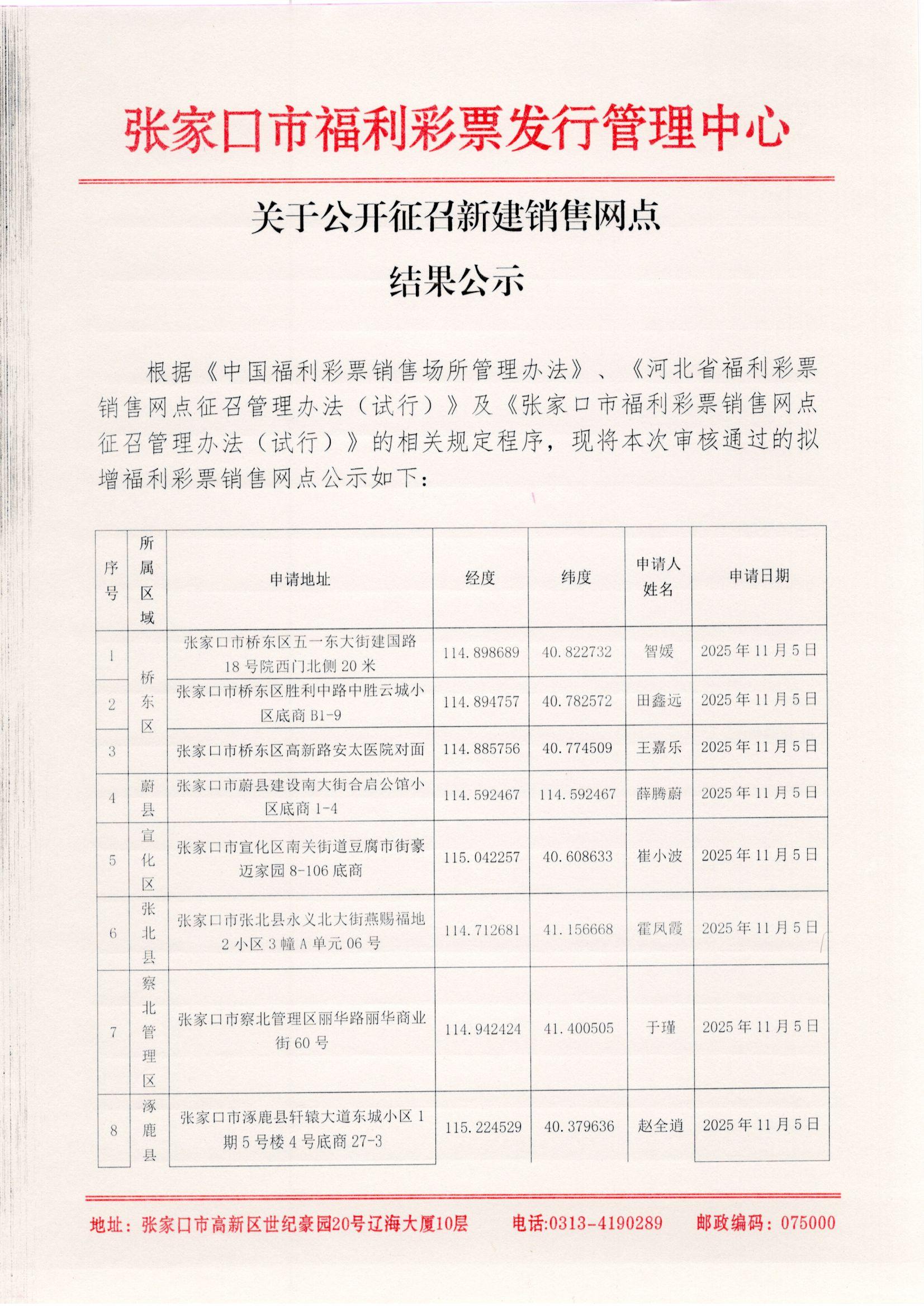 【公告】关于公开征召新建销售网点结果公示(张家口)