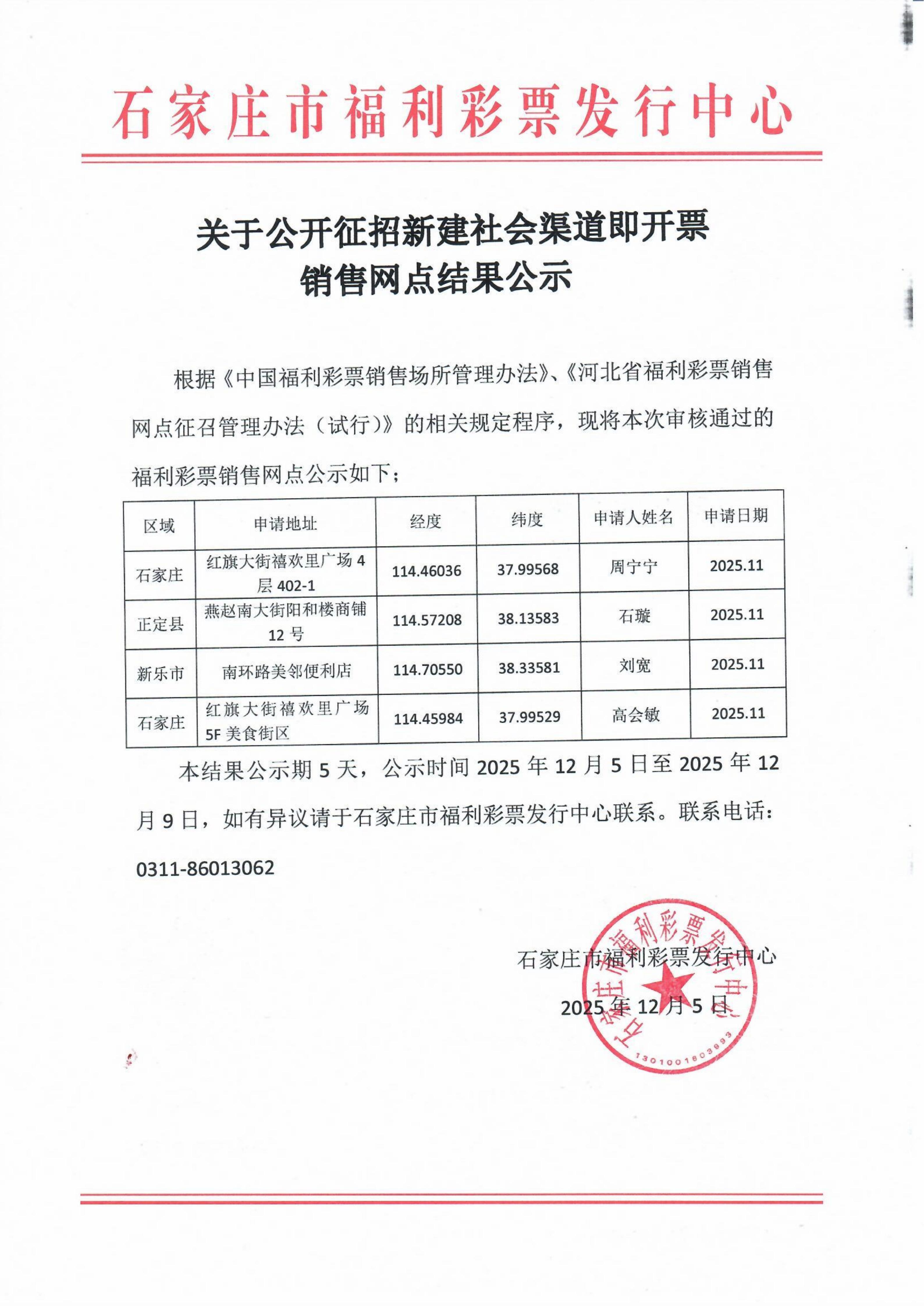 / 【公告】关于公开征招新建社会渠道即开票销售网点结果公示(石家庄)
