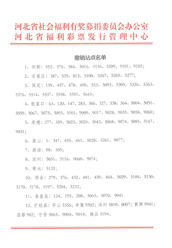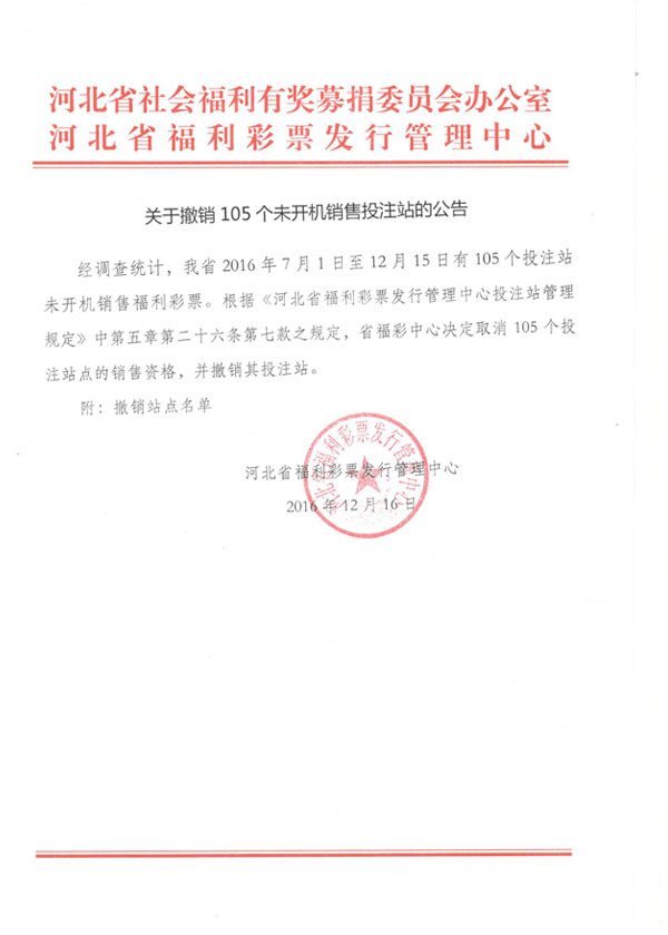 / 【公告】关于撤销105个未开机销售投注站的公告