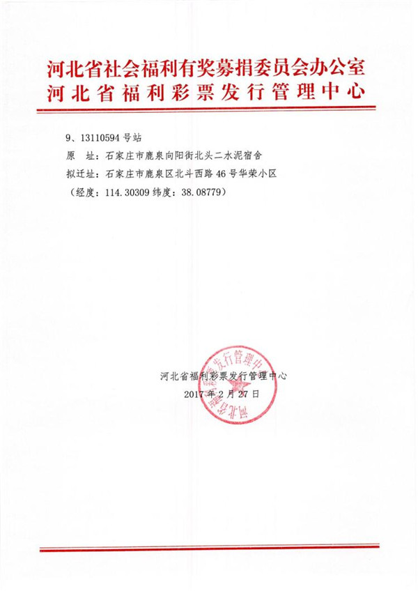 / 【公告】关于石家庄迁移福彩投注站的公示