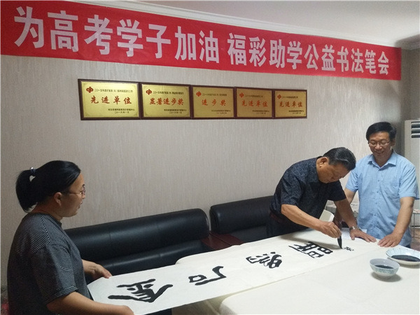 高考在即,为助力寒门学子高考,5月28日,宁晋县福彩中心举办了福彩助学公益书法笔会,为参加今年高考的寒门学子加油助威。