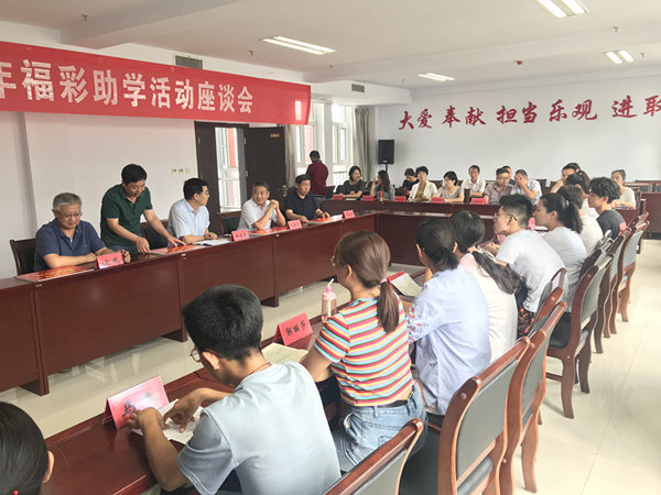 座谈会上,张家口市民政局副局长姚长友等领导分别为受助学生代表颁发了福彩助学金,10位学生代表先后发言,讲述了他们在中学时代克服各种困难、刻苦学习、奋斗拼搏、最终在高考中取得优异成绩的经历。