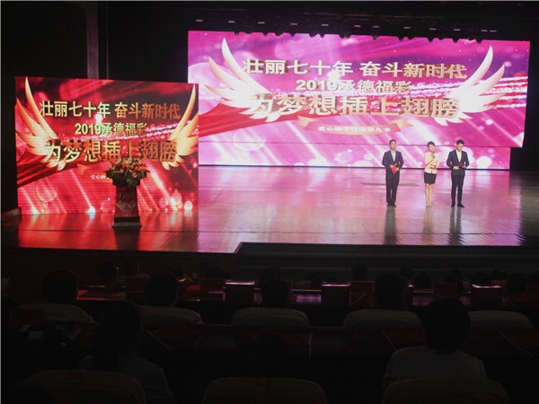 爱心传递,温暖常在。8月22日,承德市福彩中心与承德广播电视台联合主办的“壮丽七十年、 奋斗新时代——2019年承德福彩为梦想插上翅膀”暨福彩助学金发放仪式在承德大剧场举行,承德市民政局局长常金超,中共承德市委宣传部副部长、承德广播电视台台长苏永民,承德市民政局副局长窦立新等领导出席活动,并为受助学生代表颁发了福彩助学金。