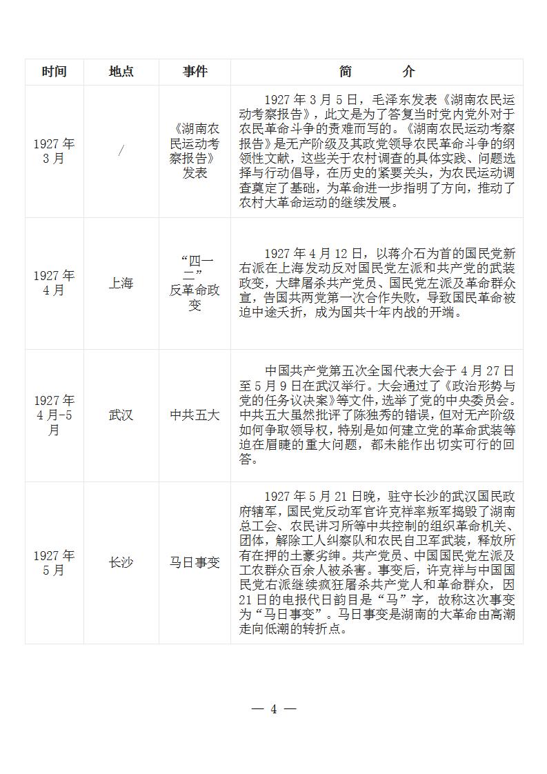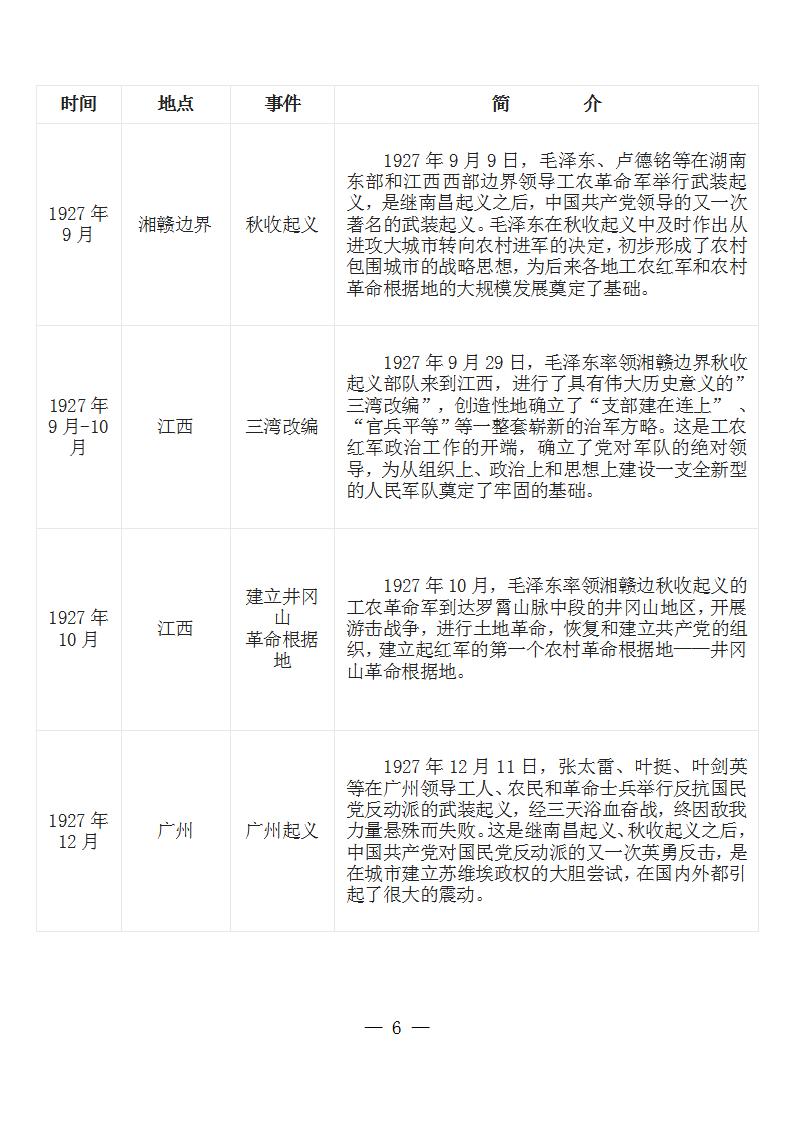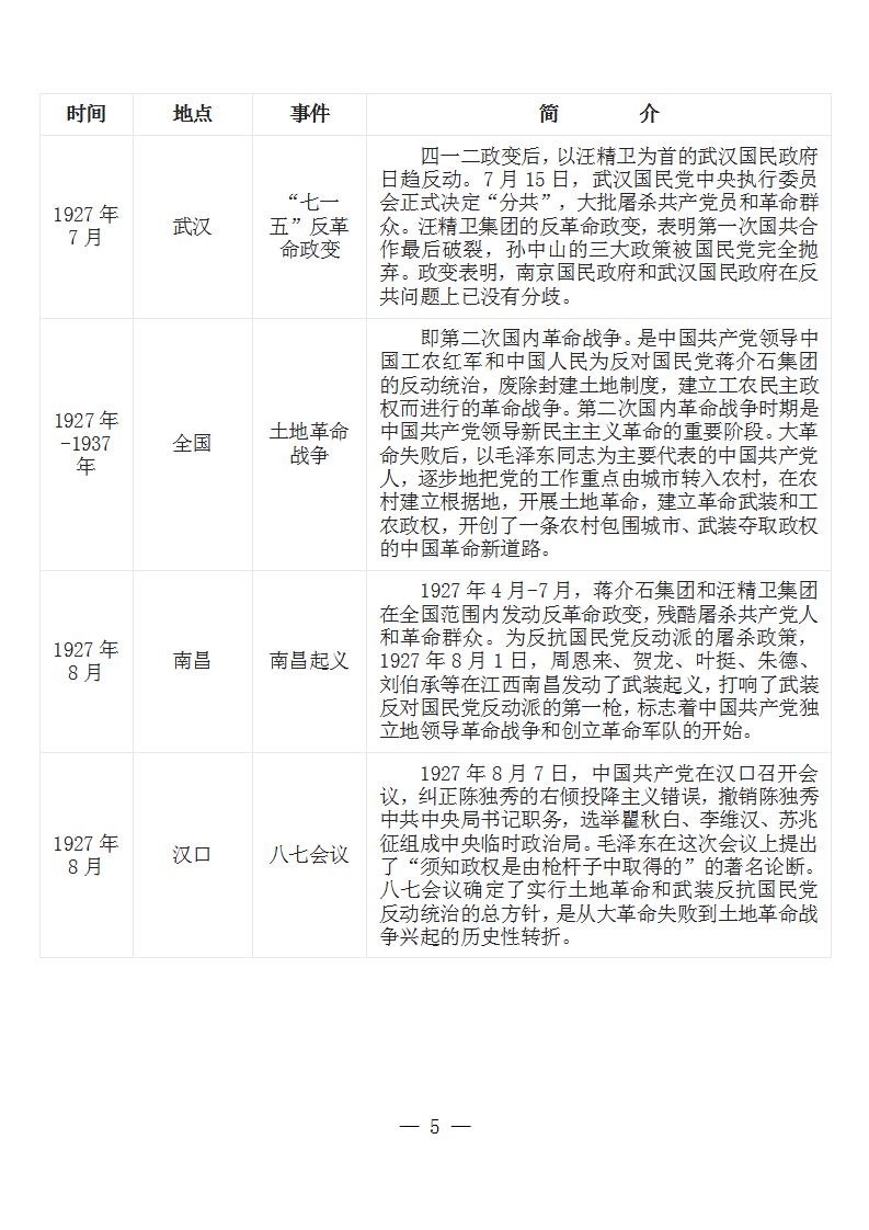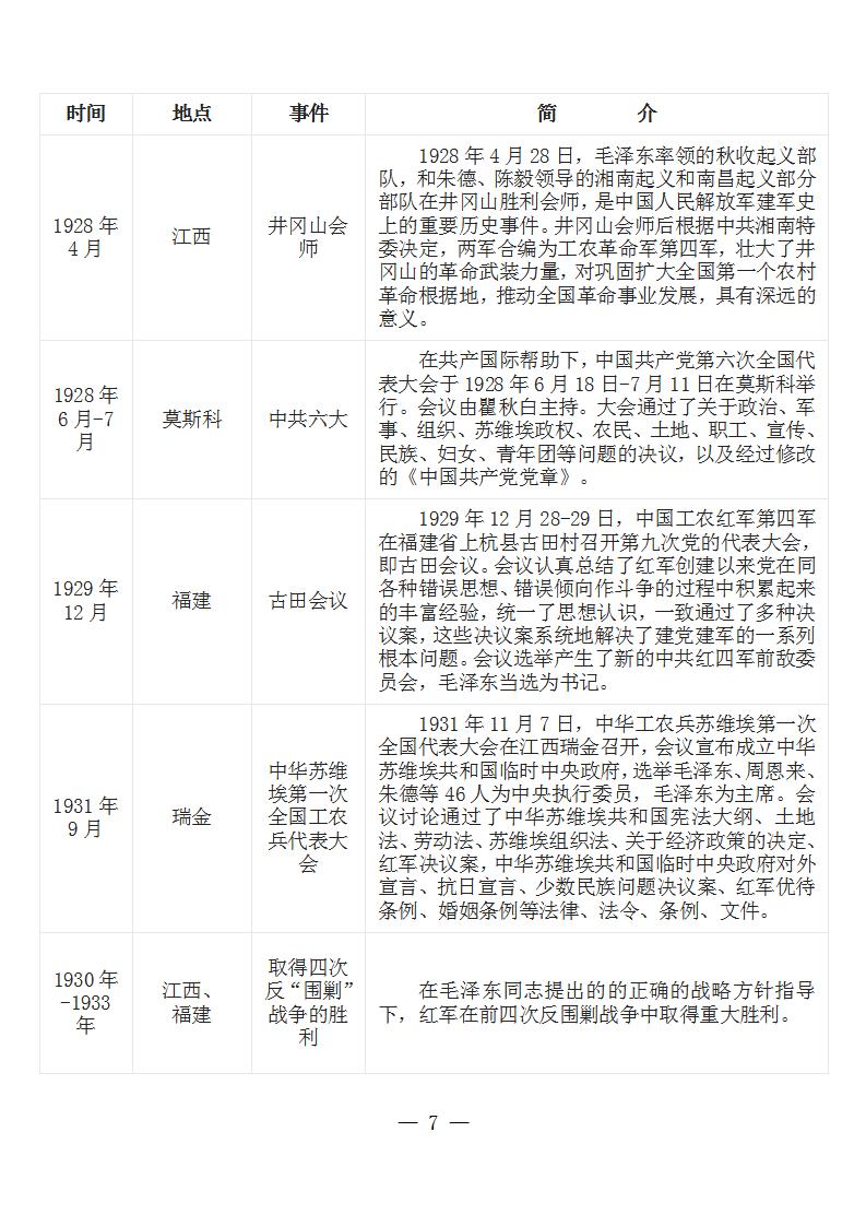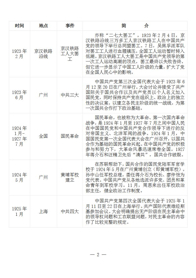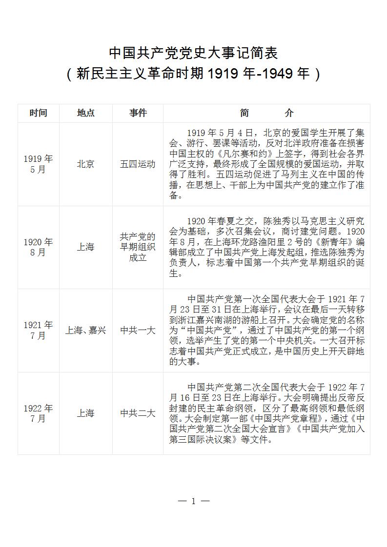 中国共产党党史大事记简表 (新民主主义革命时期1919年-1949年)