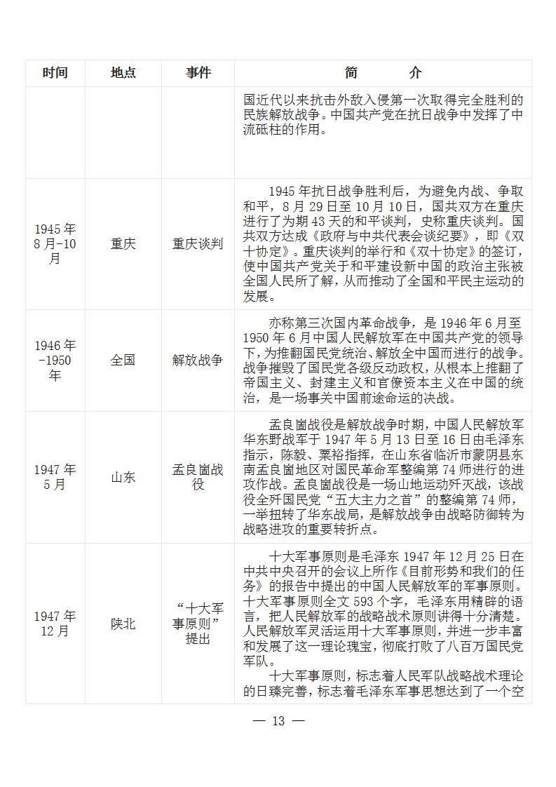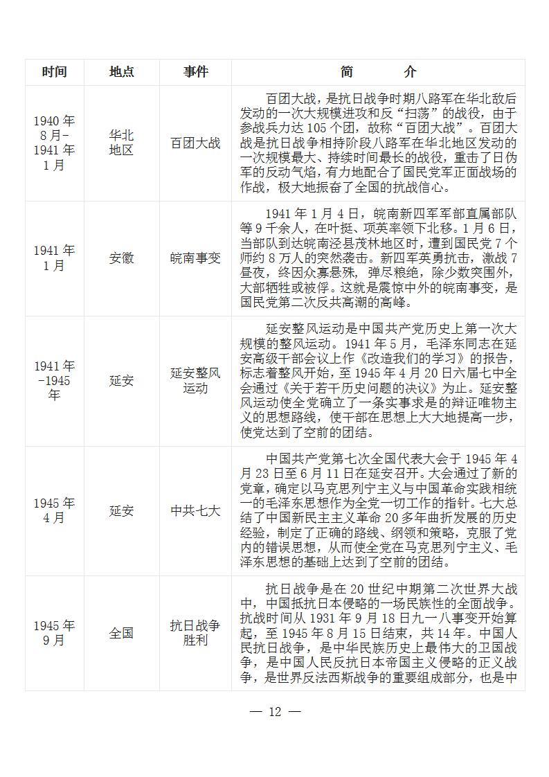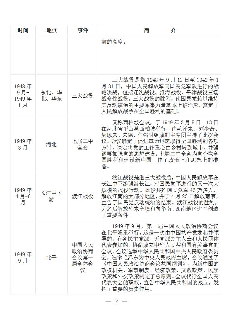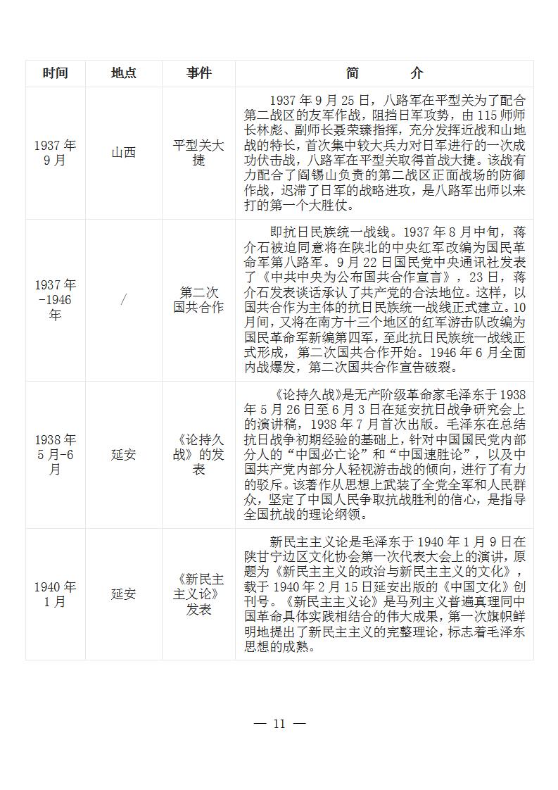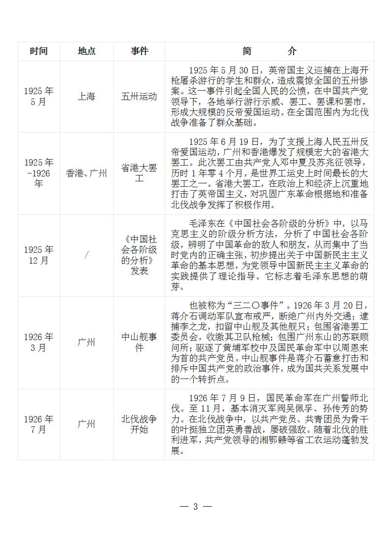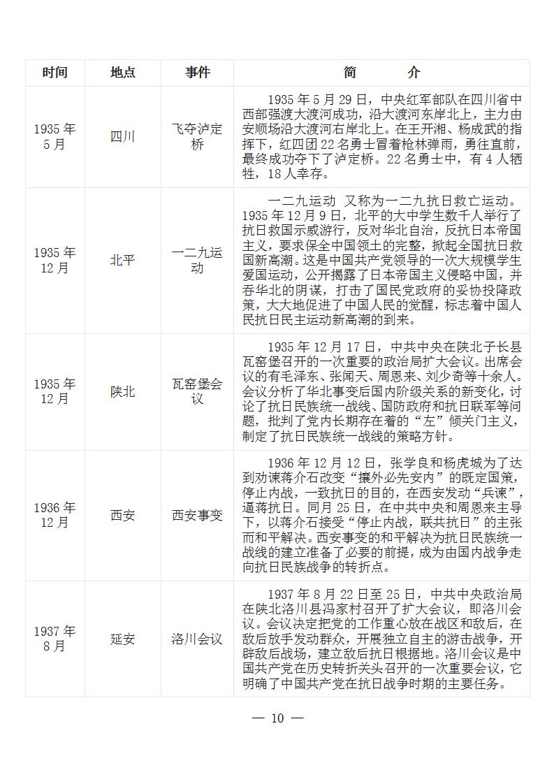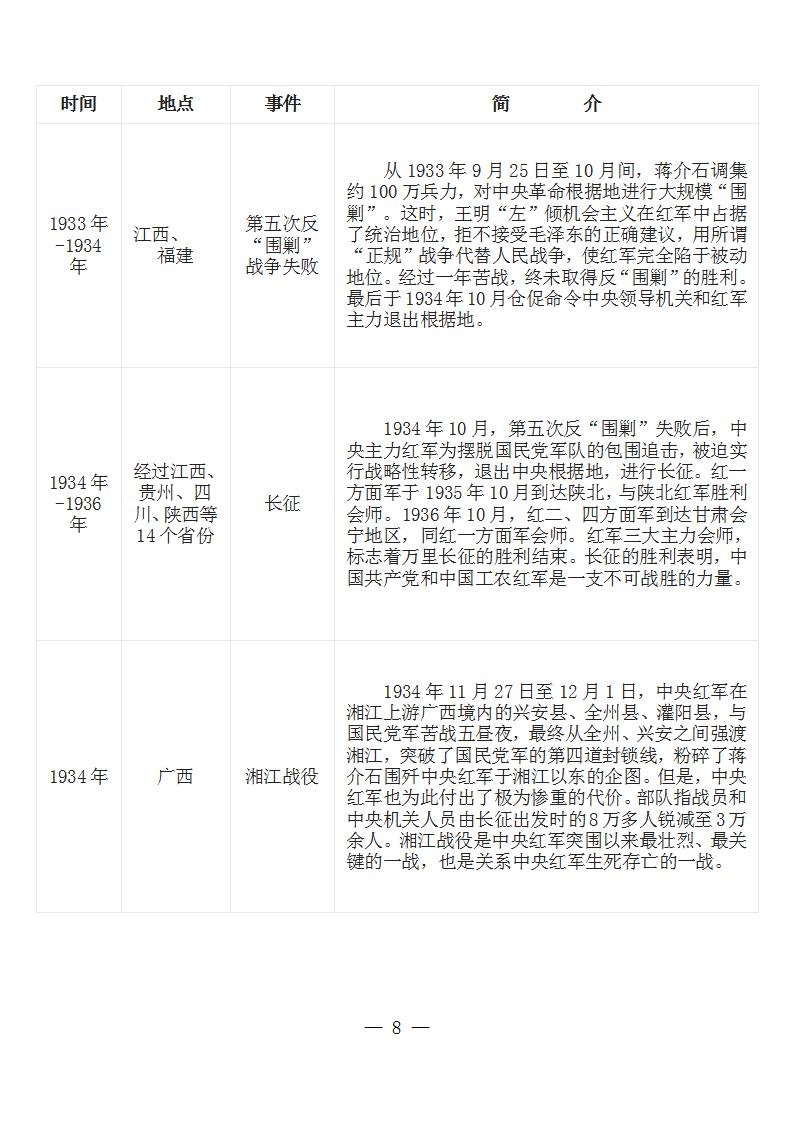 中国共产党党史大事记简表 (新民主主义革命时期1919年-1949年)
