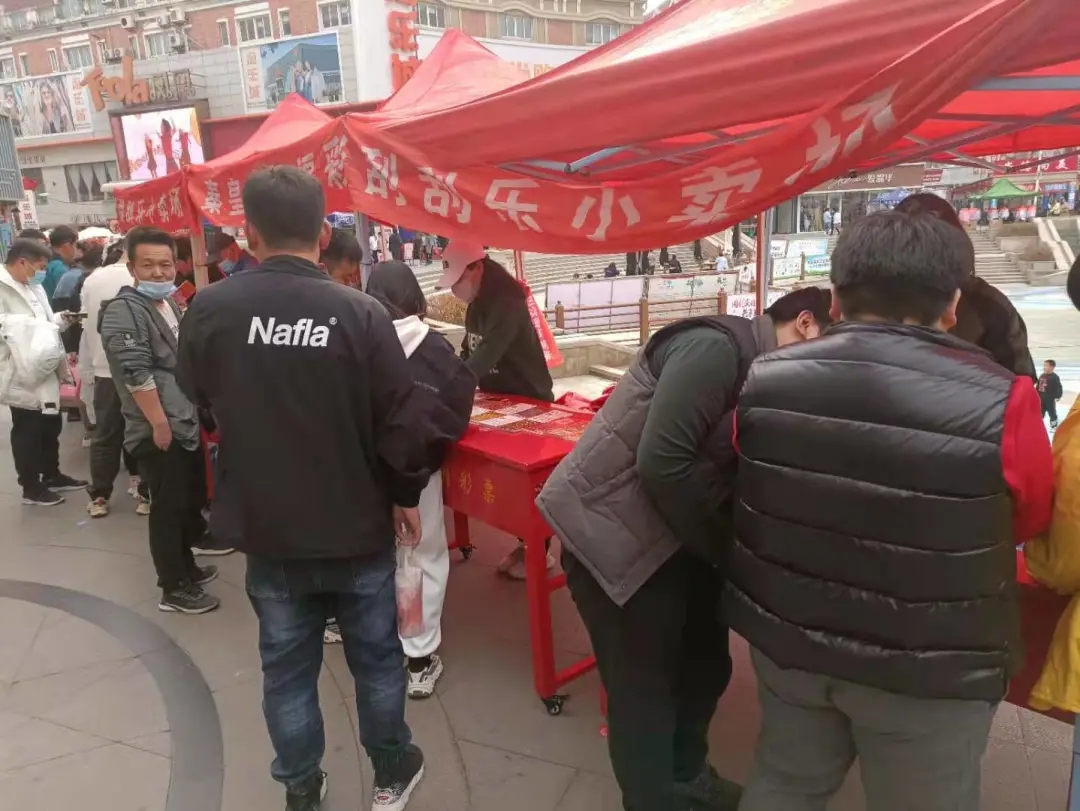 4月7日,首个刮刮乐小卖场活动在齐家务镇举办。市福彩中心工作人员身着红马甲,向行人发放宣传品,介绍刮刮乐,吸引了许多群众积极参与。(马银良、王勇、姜欢)