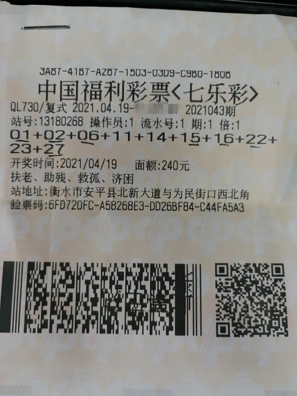 4月19日晚,七乐彩2021043期开出2注一等奖,单注奖金141.8399万元。其中一注花落衡水市安平县北新大道与为民街交口13180268站。4月21日一早,一位穿着西装、戴着金边眼镜的中年男子冒雨来到省福彩兑奖大厅领取了大奖。