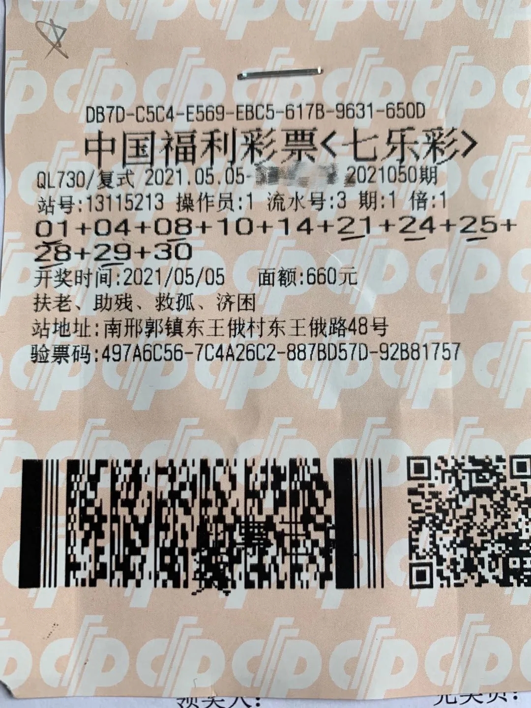 5月5日,七乐彩2021050期开出3注一等奖,单注奖金697815元,其中1注花落石家庄市赞皇县南邢镇东王俄村13115213站。5月6日下午,一位文质彬彬的男士走进省福彩中心兑奖室,他出示的正是七乐彩一等奖彩票。由于这张彩票是11个号的复式票,除一等奖外,还中了28注三等奖、126注五等奖和14注七等奖,奖金合计740515元。
