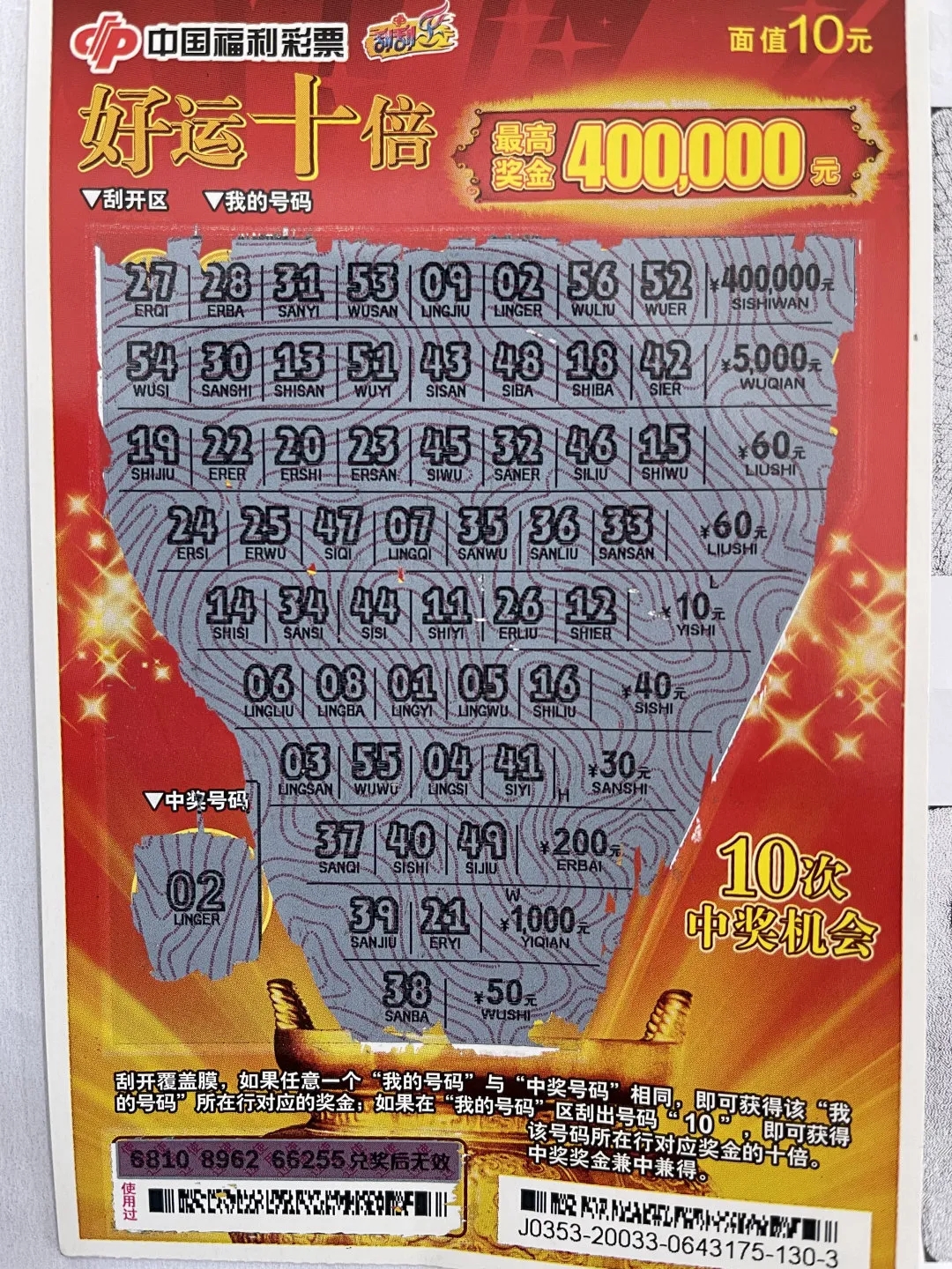 一时兴起 “好运十倍”刮出40万