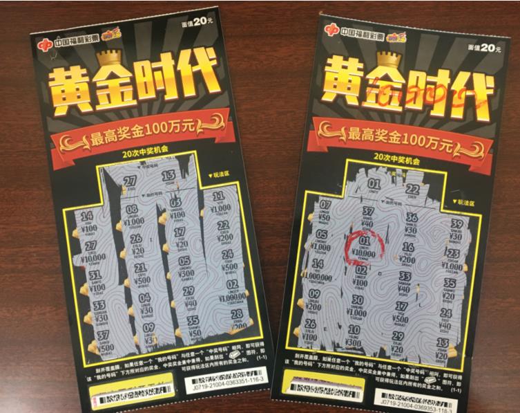 三河两位购彩者同日刮出“黄金时代”1万元