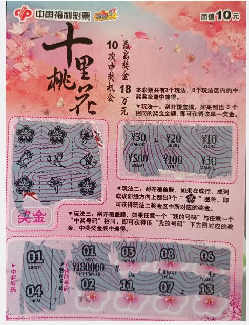辛集购彩者刮中“十里桃花”最高奖金18万元