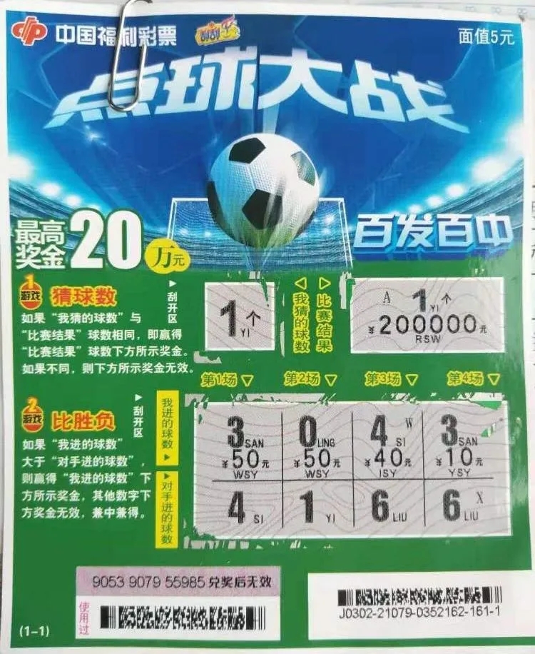 王先生居住在唐山市路北区鹭港小区13150329站附近,闲暇时间习惯到站上买几张彩票,刮刮乐和双色球是他的最爱。8月6日上午,王先生去投注站买了自己一直都喜欢的“点球大战”彩票。在第1局游戏“猜球数”中,由于“我猜的球数”与“比赛结果”球数相同,王先生因此斩获“比赛结果”球数下方所示奖金20万元。