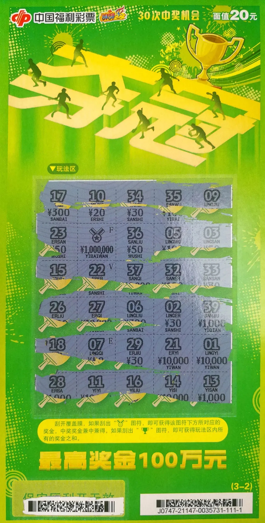 这个夏日,国人最为关注的无疑是东京奥运会。中国健儿在奥运赛场上努力拼搏、接连夺冠的消息天天爆出,令14亿中国人为之振奋。随着东京国立竞技场圣火台的奥运圣火熄灭,东京奥运会正式落下帷幕。然而,奥运赛场外的“夺冠”刚刚开始。刮刮乐彩票“夺冠”的上市,为广大福彩爱好者们带来了全新的体验。8月13日,廊坊霸州市胜芳镇13169019站一位购彩者有幸成为了刮刮乐“夺冠”100万元大奖获得者。