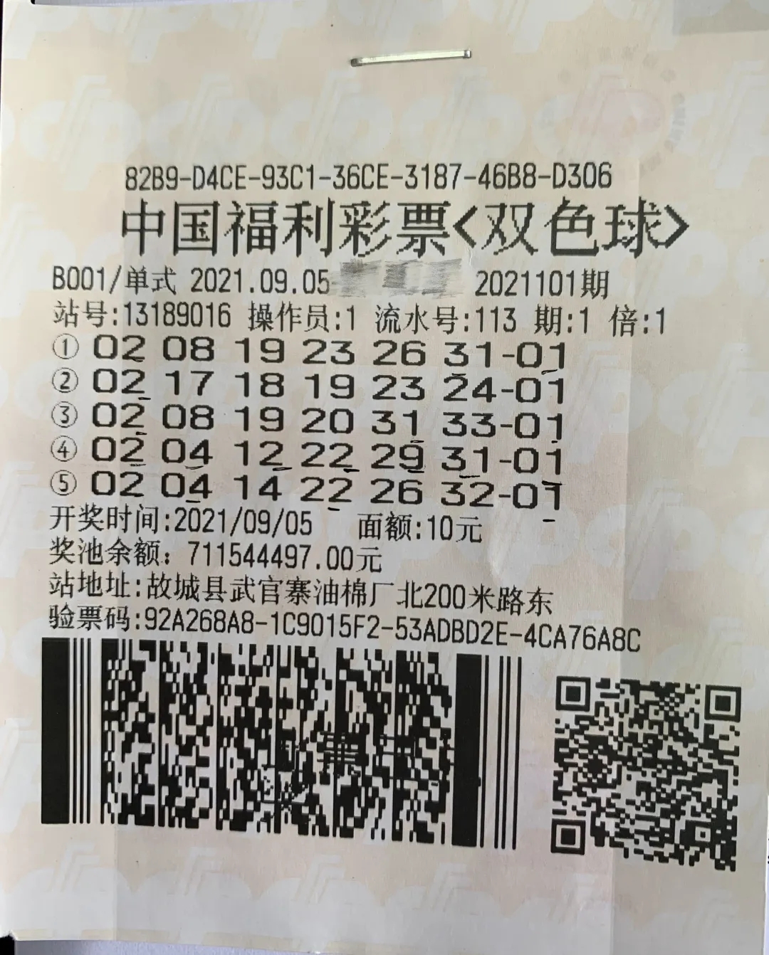9月5日,双色球第2021101期,衡水市故城县武官寨镇13189016站中出一等奖1注,单注奖金868.283万元。9月8日一早,一个行色匆匆的身影走进省福彩中心兑奖室,他环顾了一下四周,才问工作人员这里是否能领大奖,在得到工作人员的肯定回答之后,他才把证件和中奖彩票拿出来,原来这位就是868万大奖得主吴先生(化姓)。