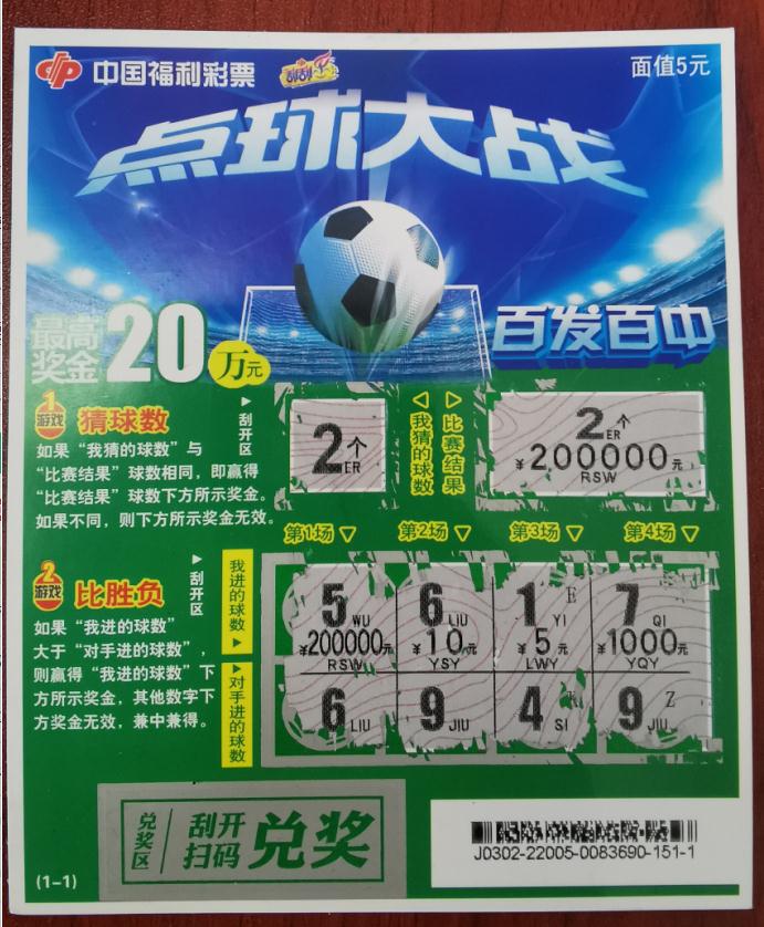 20万元!“点球大战”一刮即中!4月18日中午,在河间市13175021号福彩投注站,购彩者孟德强(化名)幸运刮出“点球大战”最高奖金20万元,孟先生因此成为今年以来沧州市首个刮刮乐大奖得主。