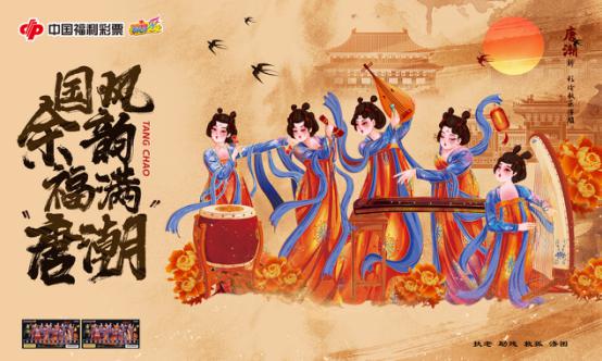 该主题彩票是以国家文物《彩绘散乐浮雕》为原型,使用新国潮画法进行二次创作而设计的。票面兼具艺术感与文化内涵,通过美轮美奂的乐工形象,完美再现大唐余韵、古乐风采。