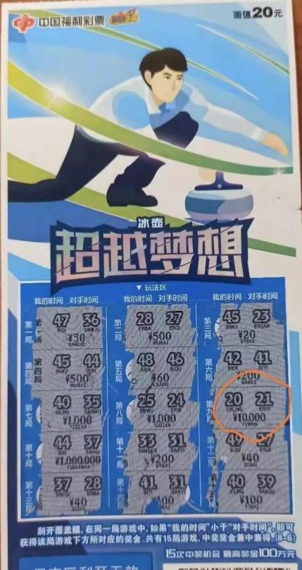据了解,张先生是一名上班族,之前没有购买过彩票。中奖当天,他和两位同事外出办事,其中一个同事提议刮几张刮刮乐解解压。张先生与同事一起来到谈固东街和平路交口东南角的13110834站,每人买了一张面值20元的“超越梦想”,两位同事刮开之后都没有中奖,张先生由于是第一次刮彩票,动作不太娴熟,他慢慢刮开彩票上的覆盖膜,发现第九局游戏中“我的时间”小于“对手时间”,根据游戏规则,张先生获得了该局游戏下方所对应的奖金1万元。