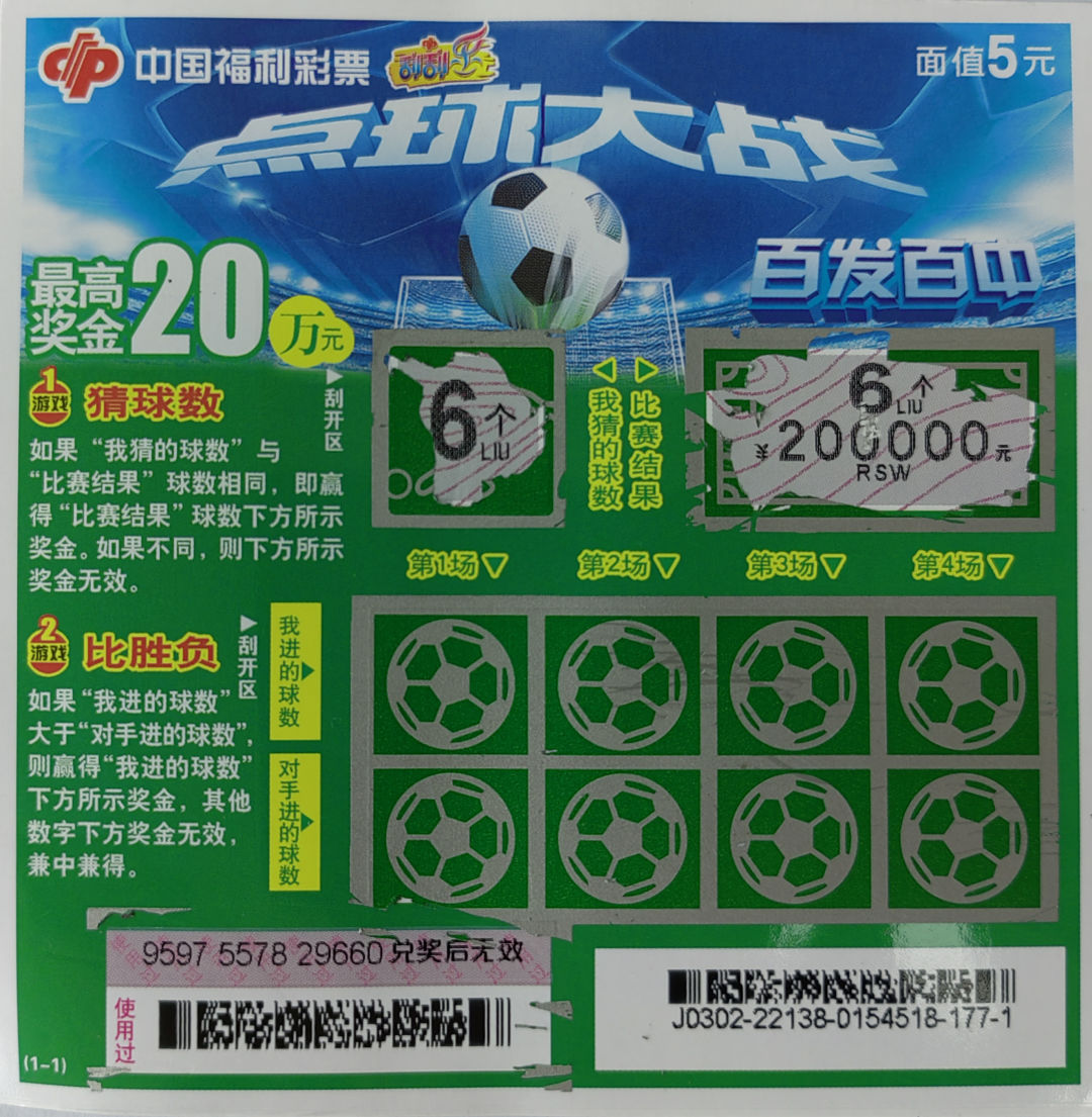 白先生今年30多岁,在泊头市交河镇一家工厂打工。2月2日,工厂还未开工,他和同村的几个工友在一起打扑克。“打牌没啥意思,咱们不如去附近的福彩销售网点买几张彩票碰碰运气。”在白先生的提议下,三个工友和他一起来到了镇上的13179065号销售网点。白先生机选了5注双色球,又购买了20张“点球大战”,悠哉乐哉地刮了起来。他让同来的工友也试试手气,他们却无动于衷,只是看着白先生刮。白先生前十多张一无所获,剩下最后几张时,其中一张“我猜的球数”中出现了和“比赛结果”相同的数字6,下边对应的正是最高奖金20万元!