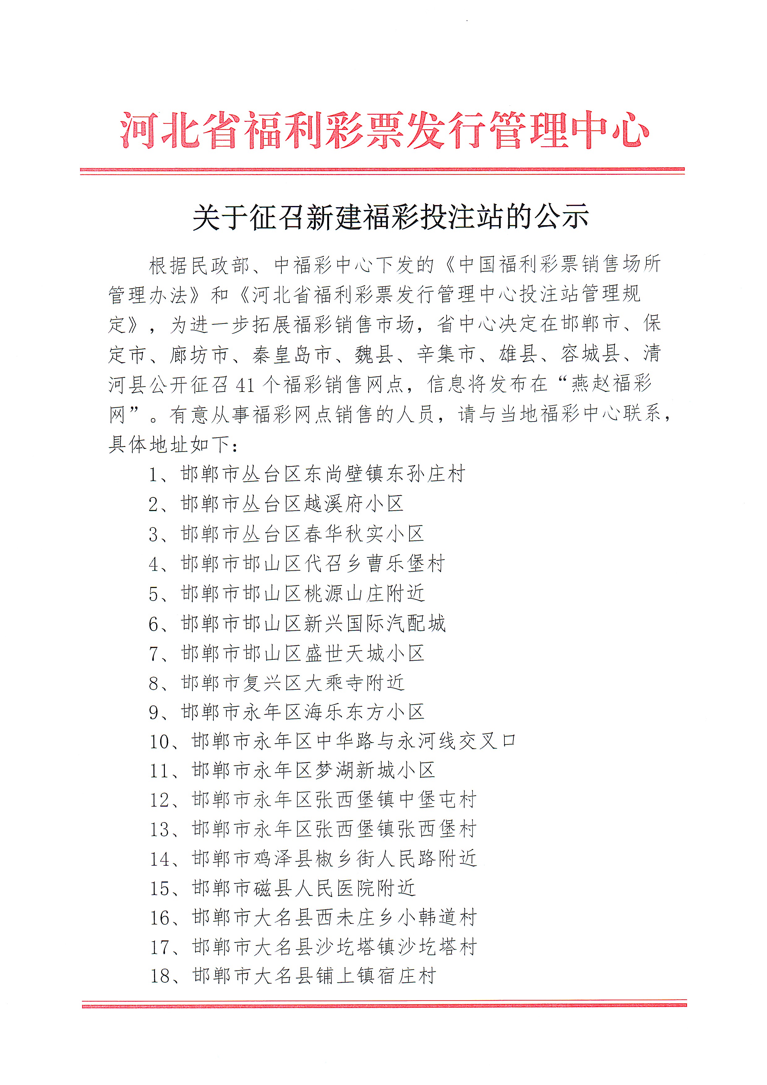 上一篇:【公告】关于征召新建福彩投注站的公示