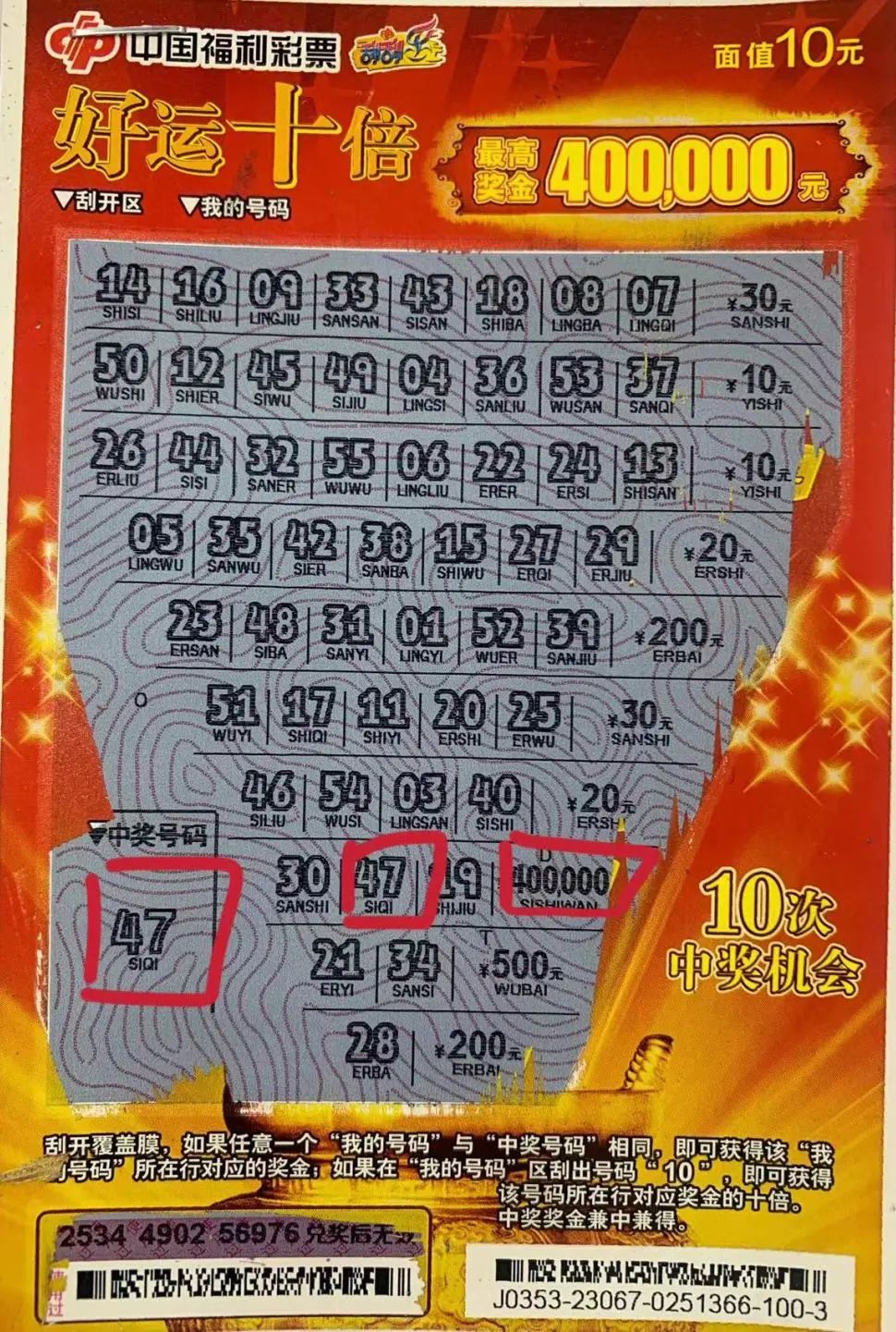 “好运十倍”送惊喜 衡水购彩者刮中40万元