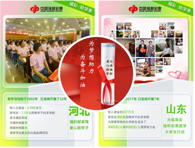 河北省“福彩献真情 爱心助学子”、江苏福彩“爱心助学”、山东省“为福添彩·福利彩票圆梦大学生行动”、陕西省“公益福彩·资助困难大学新生”……各省的助学活动为困难学子的求学之路插上梦的翅膀,让他们的身影不再孤单。