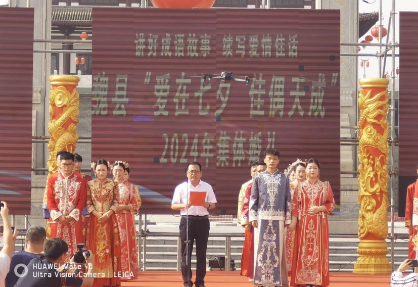 8月10日,农历七月初七。由魏县民政局、魏县文明办等单位联合主办的“爱在七夕、佳偶天成”集体婚礼在魏祠广场举行,20对领取结婚证的新人应邀参加了集体婚礼和移风易俗推广活动。