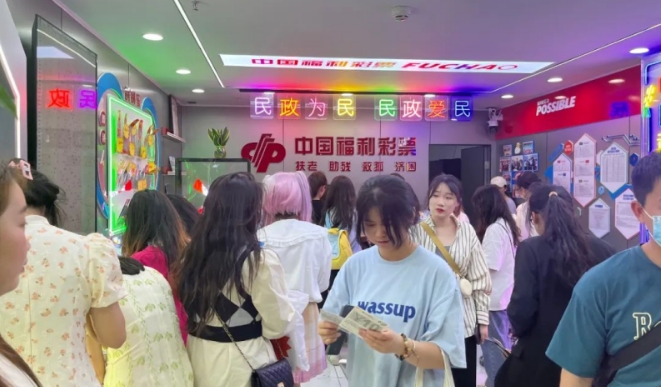 创意福彩,美好新生活!近年来,中国福利彩票积极尝试跨界新模式,建立起与年轻人沟通的新语境。这不,长沙市润和国际广场43013509号福潮店成了新晋网红打卡地。该站点业主余炳红充分发挥自主营销主动性,利用自身资源,联合电竞名人举办活动,吸引千余名年轻人现场打卡,超40万粉丝线上观看。电竞选手“梦泪”等亮相福潮店,与粉丝互动,砸金蛋、合影。不少年轻购彩者走进店里,感受到刮刮乐简单、有趣、即开即兑的魅力后直呼“喜欢!”