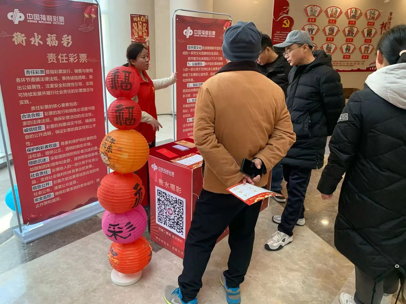 在宝云景区内,特别定制的“衡水福彩”大红灯笼高高挂起,与古朴的宝云塔相映成趣,传统与历史的交融瞬间点燃了人们的新春热情。市福彩中心在景区内设立了福彩形象展示区和刮刮乐体验区,吸引了众多市民驻足参与。此外,还为游客准备了春节对联、灯笼、挂历等丰富的礼品,让大家在享受福彩乐趣的同时,也感受到了福彩的温暖与关怀。
