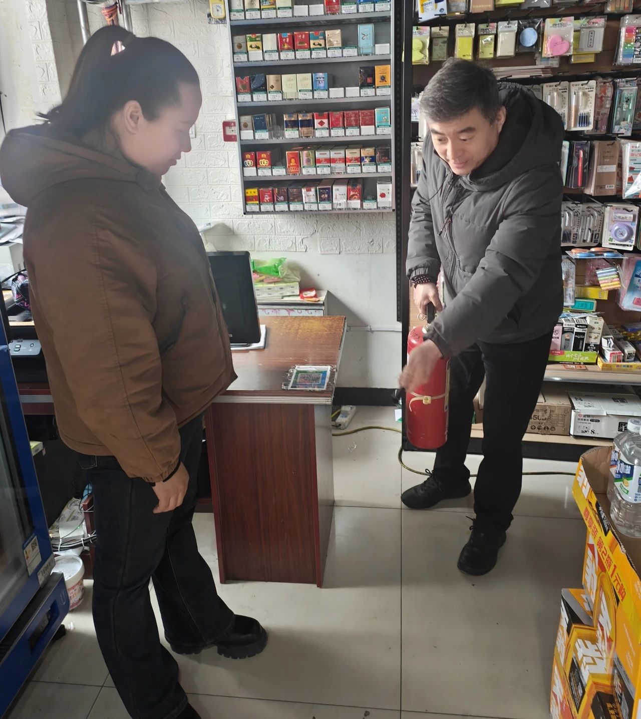 检查过程中,李健超现场演示灭火器正确使用方法,强调消防器材管理的重要性,要求各网点严格执行灭火器定期检测,确保设备随时处于可用状态。同时,他重申安全规定,严禁在销售场所内为电动车充电、使用煤气罐等易燃易爆物品,坚决杜绝违规行为引发的安全事故。