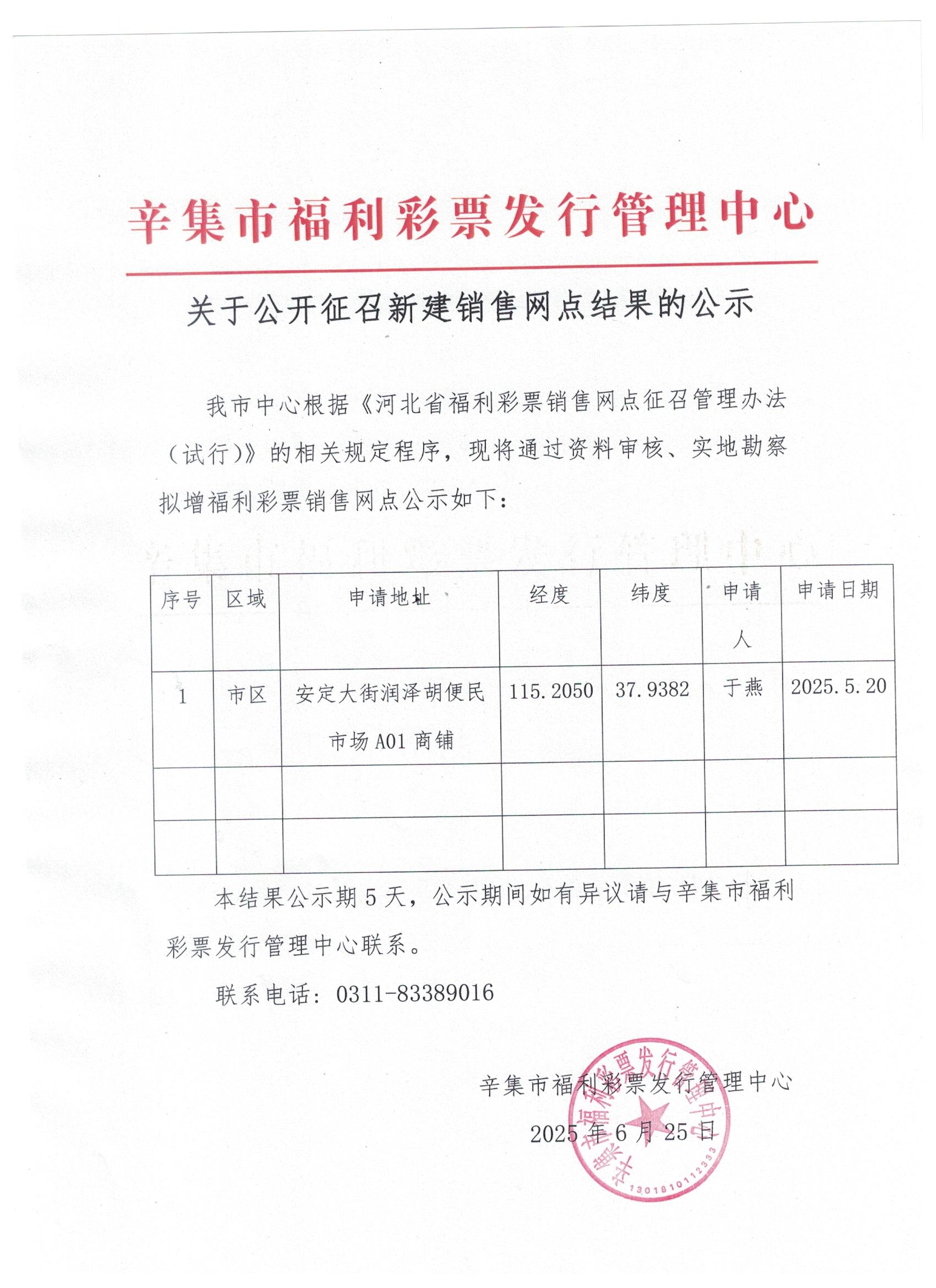 / 【公告】关于公开征召新建销售网点结果公示(辛集)