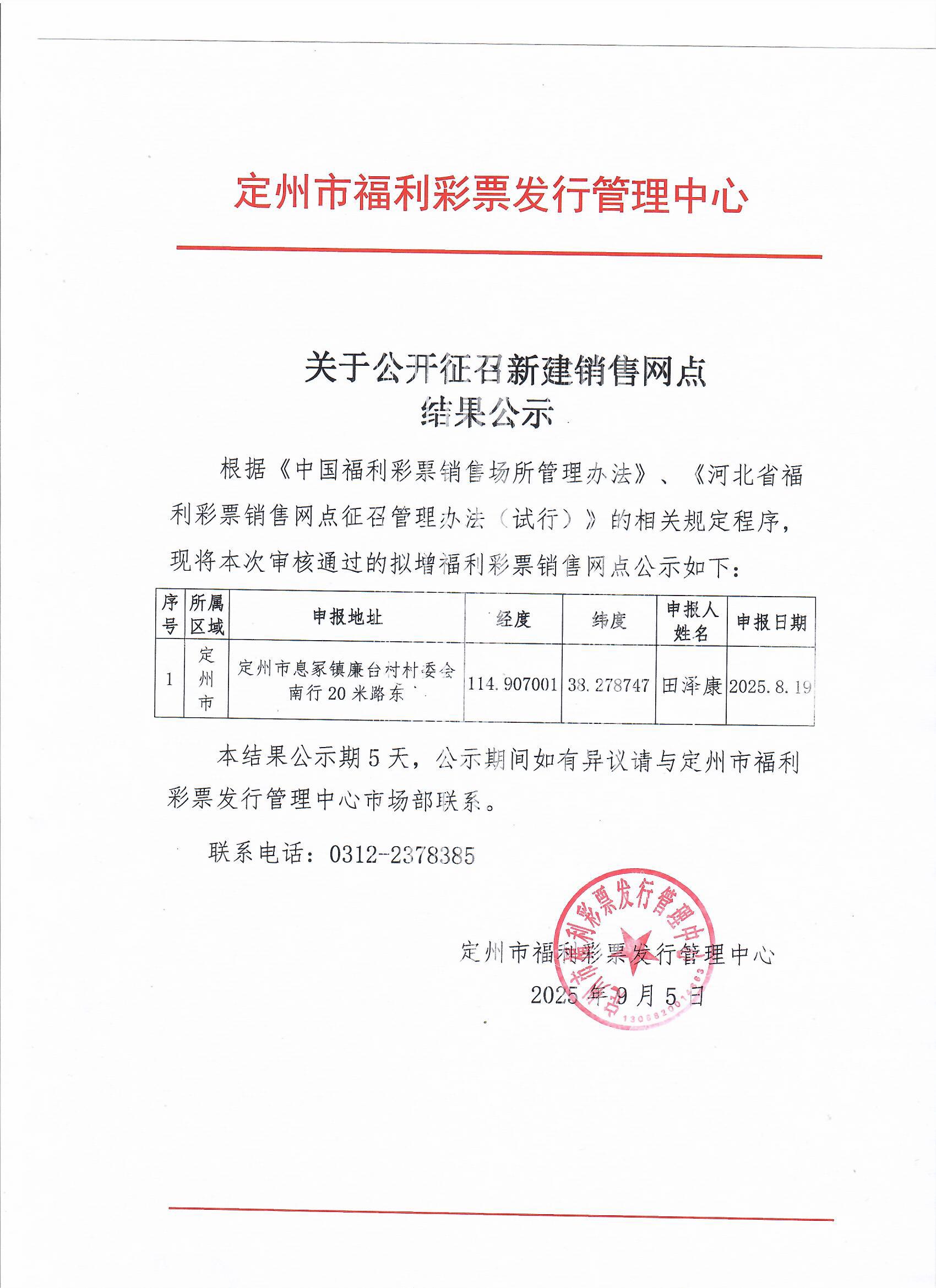 / 【公告】关于公开征召新建销售网点结果公示(定州)