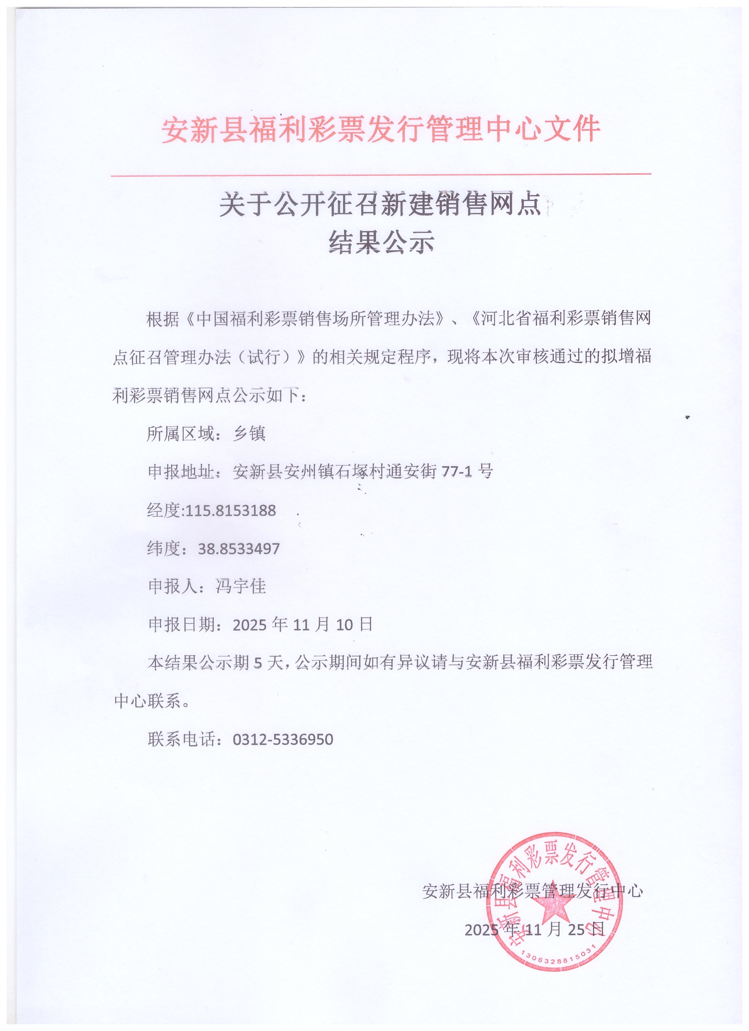 【公告】关于公开征召新建销售网点结果公示(安新)