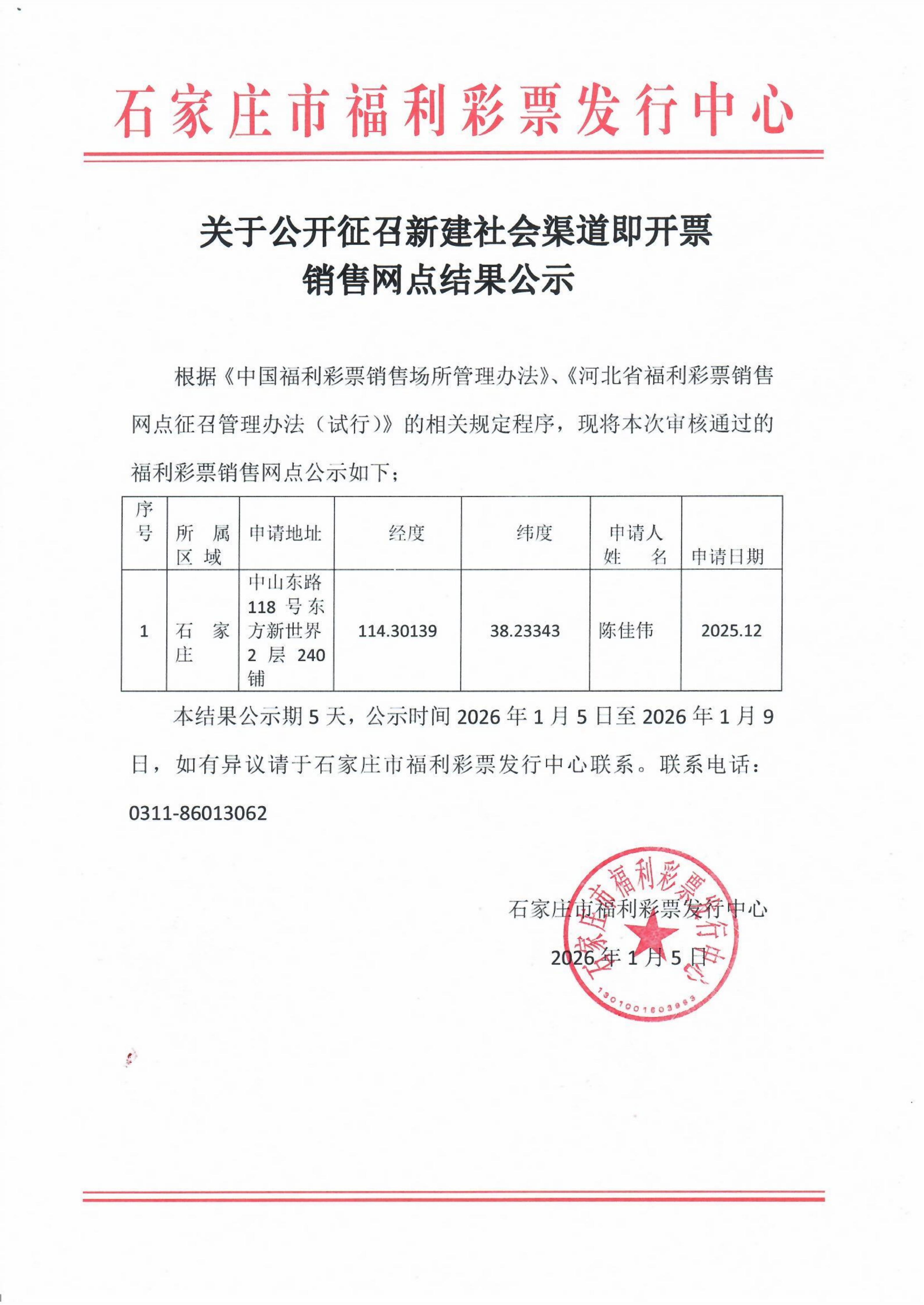 / 【公告】关于公开征召新建社会渠道即开票销售网点结果公示(石家庄)