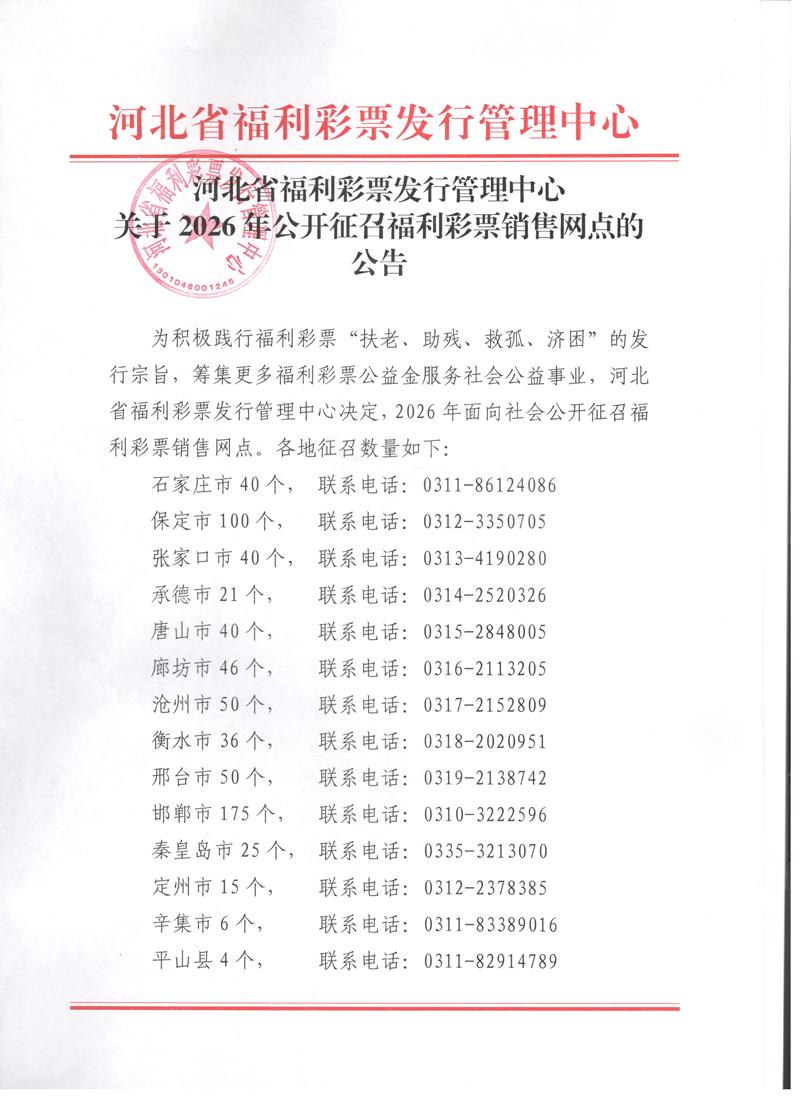 / 【公告】关于2026年公开征召福利彩票销售网点的公告